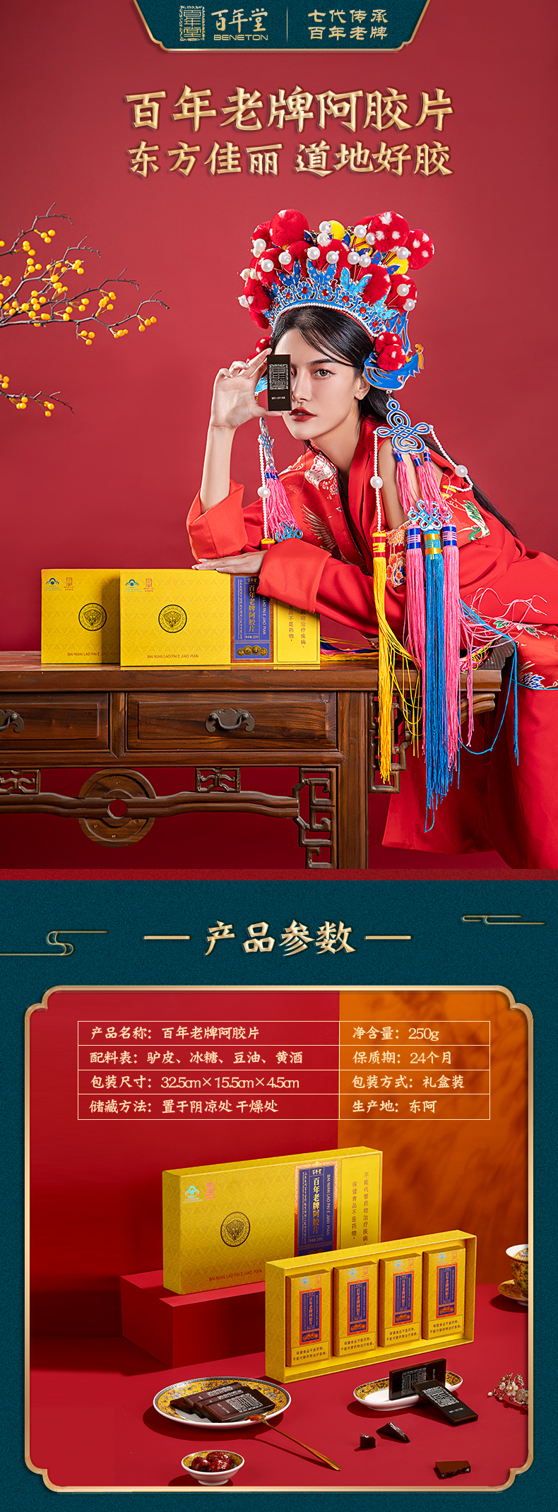 商品名称:东阿百年堂百年老牌阿胶片礼盒250g
