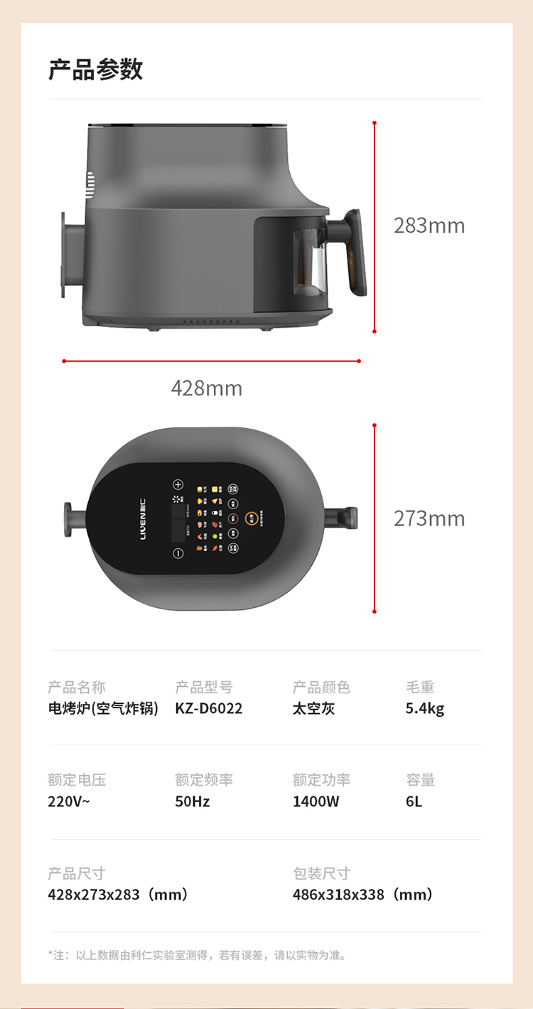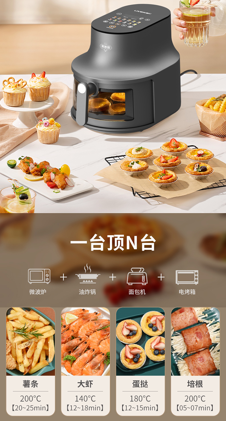 商品名称:【京东/顺丰配送】Liven/利仁6升空气炸锅-太空灰KZ-D6022