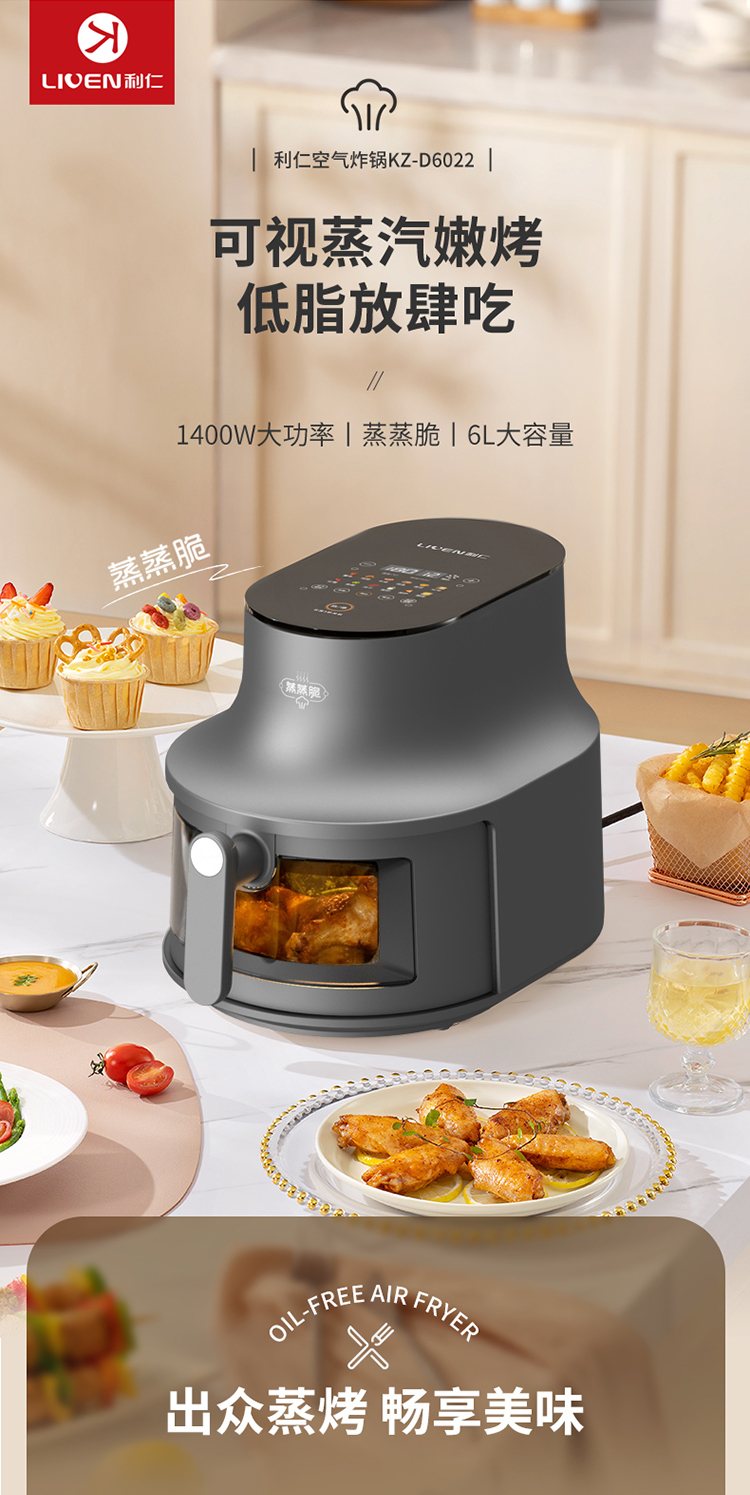 【京东/顺丰配送】Liven/利仁6升空气炸锅-太空灰KZ-D6022