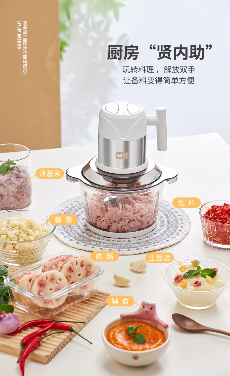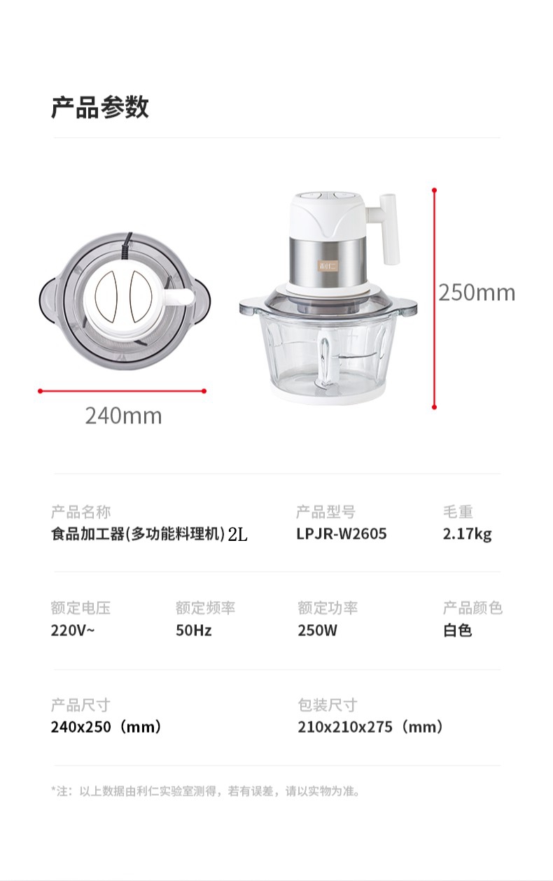 商品名称:【顺丰配送】Liven/利仁2升多功能料理机-白色LPJR-W2658