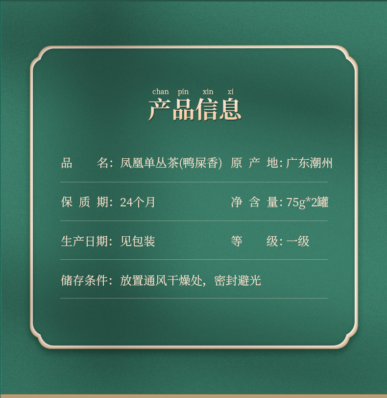 商品名称:良西农场鸭屎香凤凰单丛茶叶礼袋150g