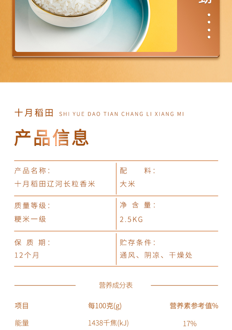 商品名称:【京东/德邦配送】十月稻田辽河长粒香米2.5kg