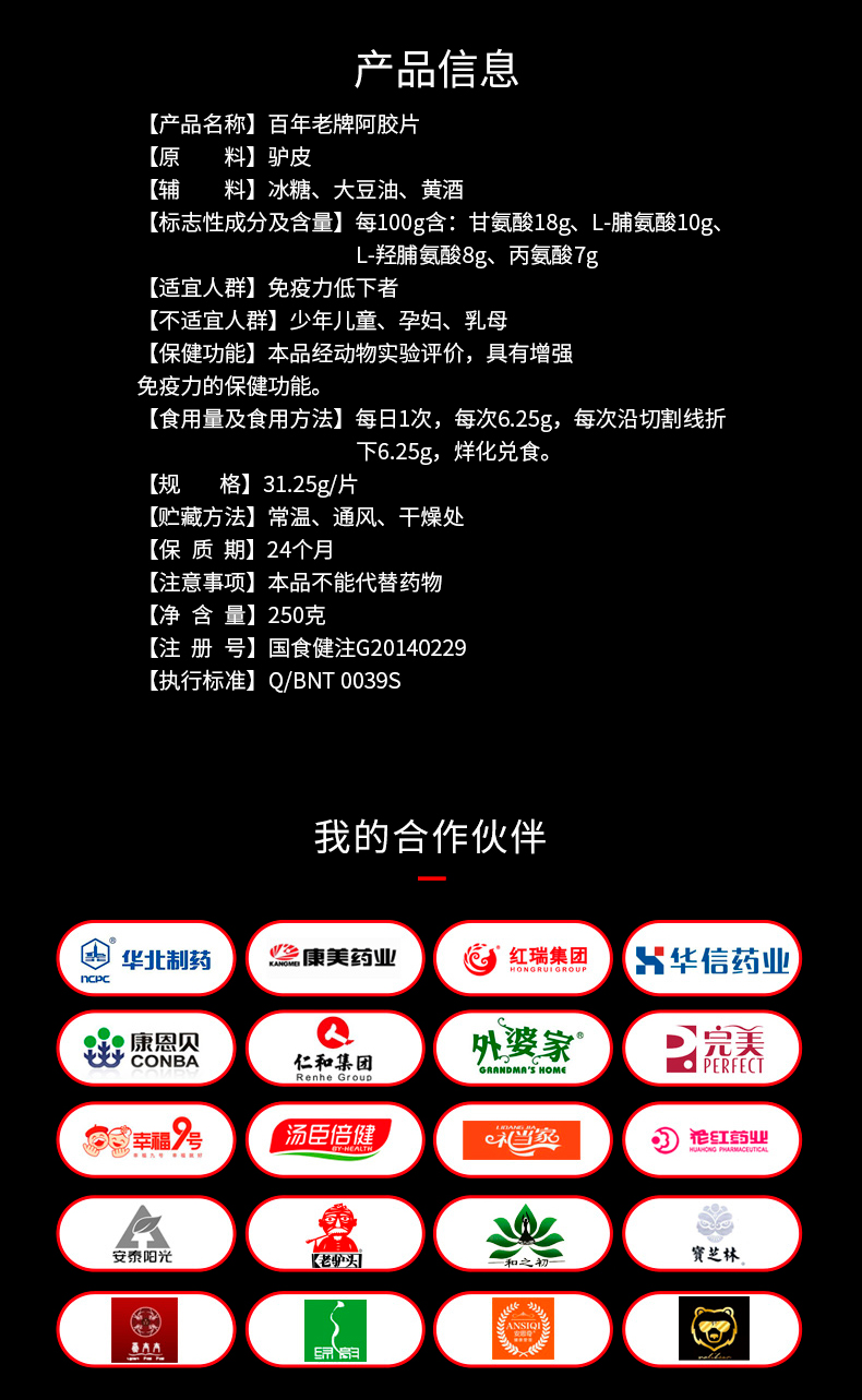 商品名称:东阿百年堂百年老牌阿胶片礼盒250g