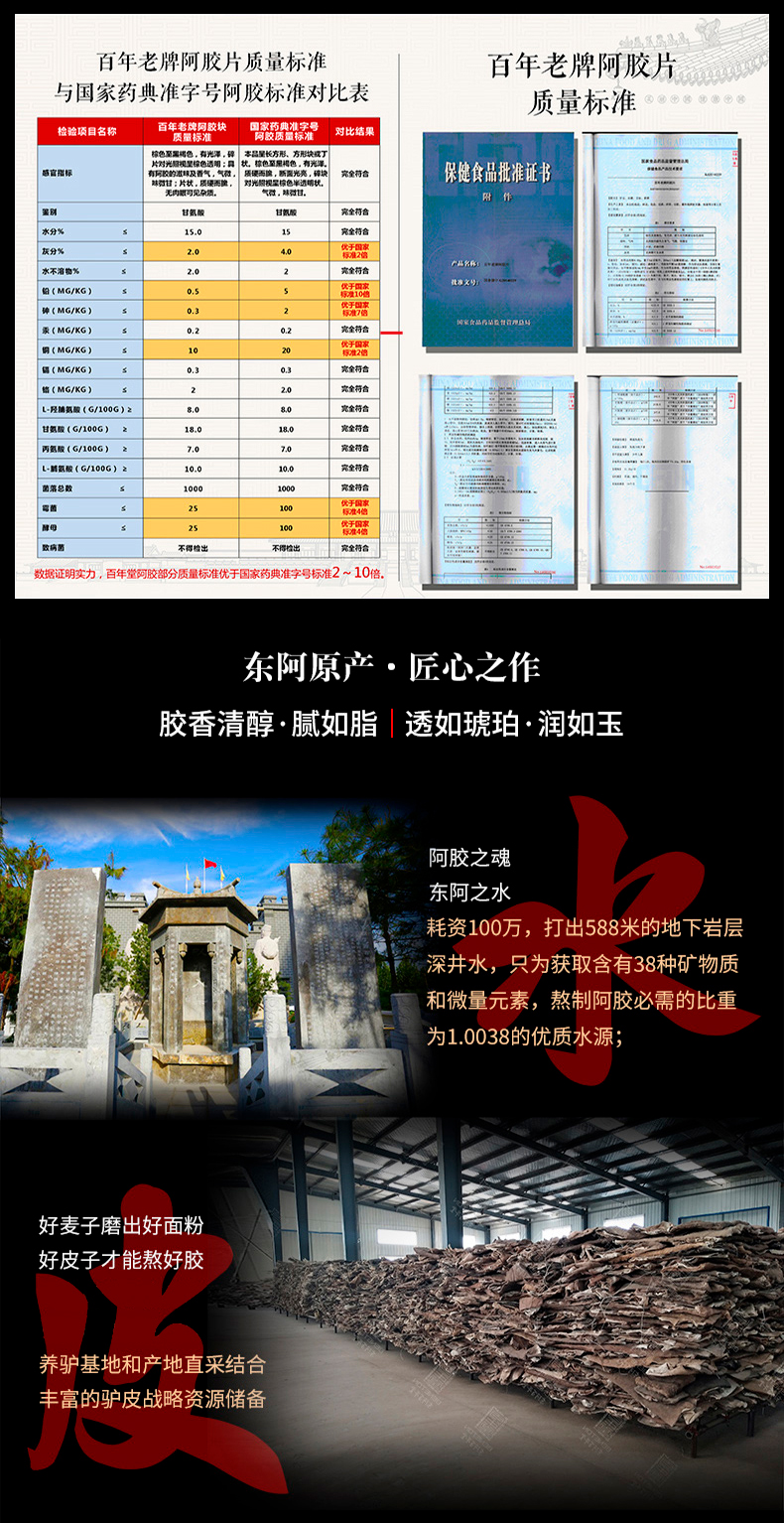 东阿百年堂百年老牌阿胶片礼盒250g
