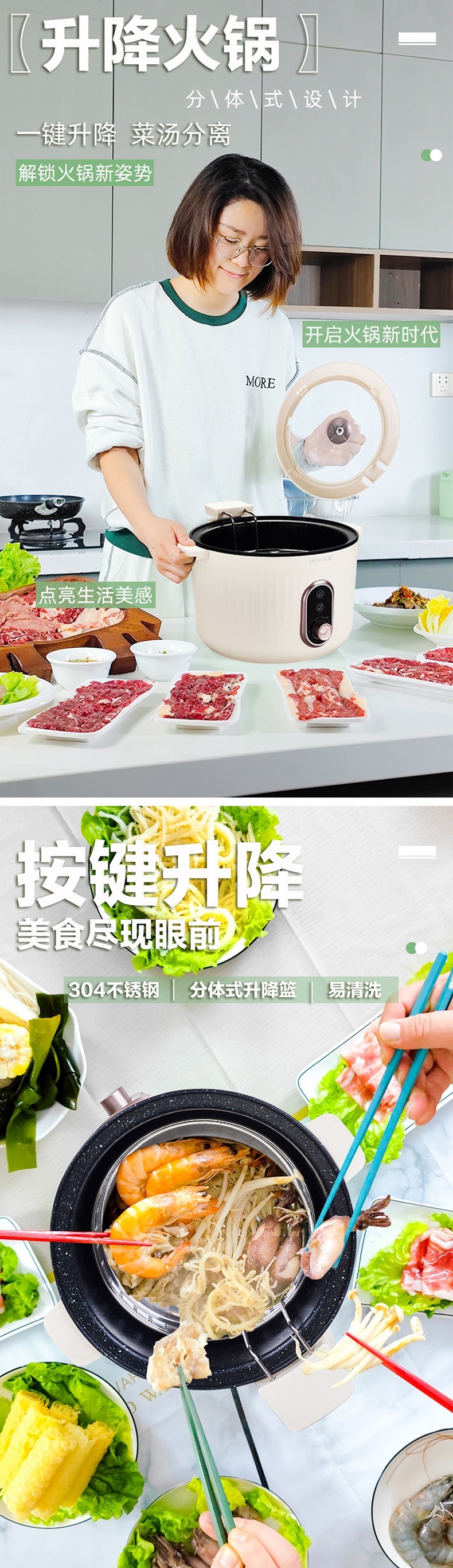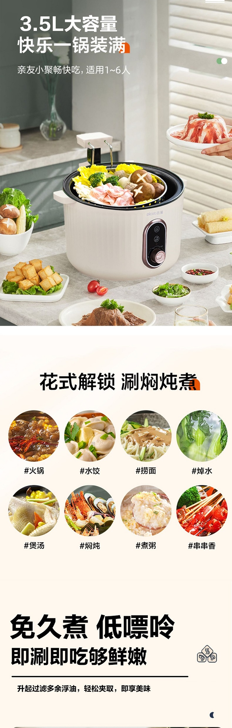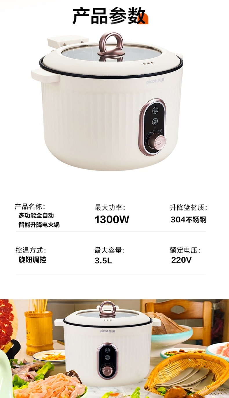 商品名称:picot/蓓菓3.5升智能升降电火锅-米白色BG2303