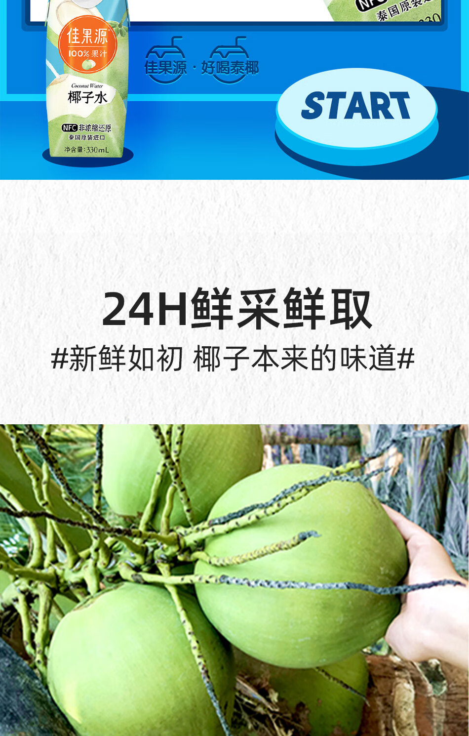 商品名称:【京东/德邦配送】佳果源100%NFC椰子水整箱330ml*12瓶