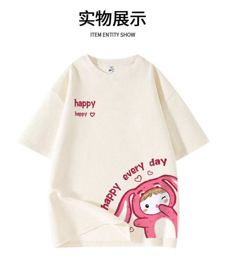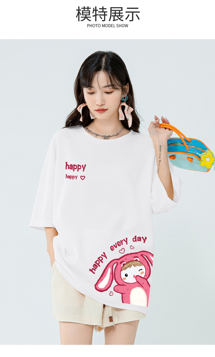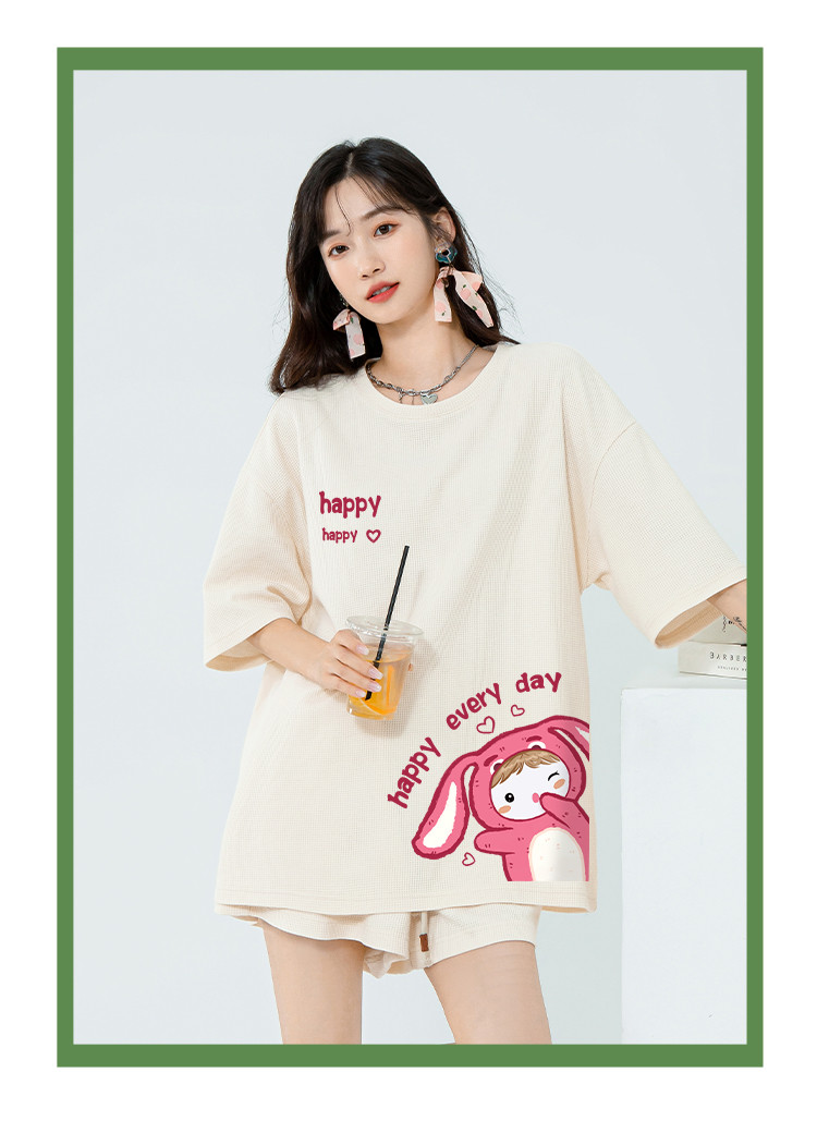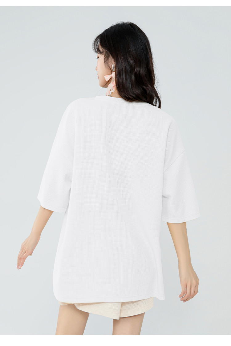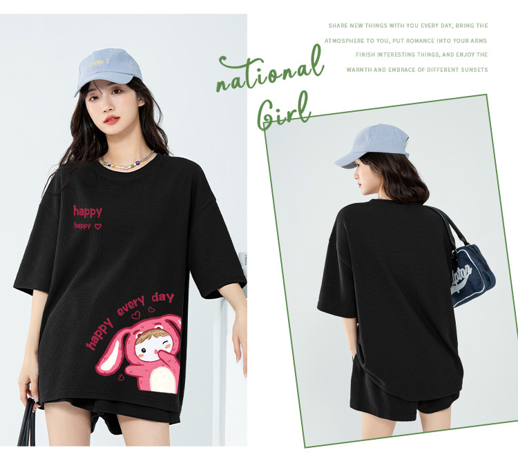 商品名称:【女装】华夫格运动套装女夏季宽松重磅中长T+三分短裤 987219