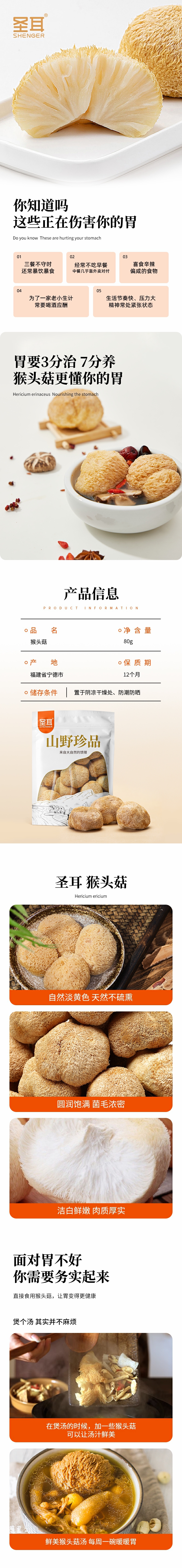 商品名称:圣耳山野珍品猴头菇80g*3袋