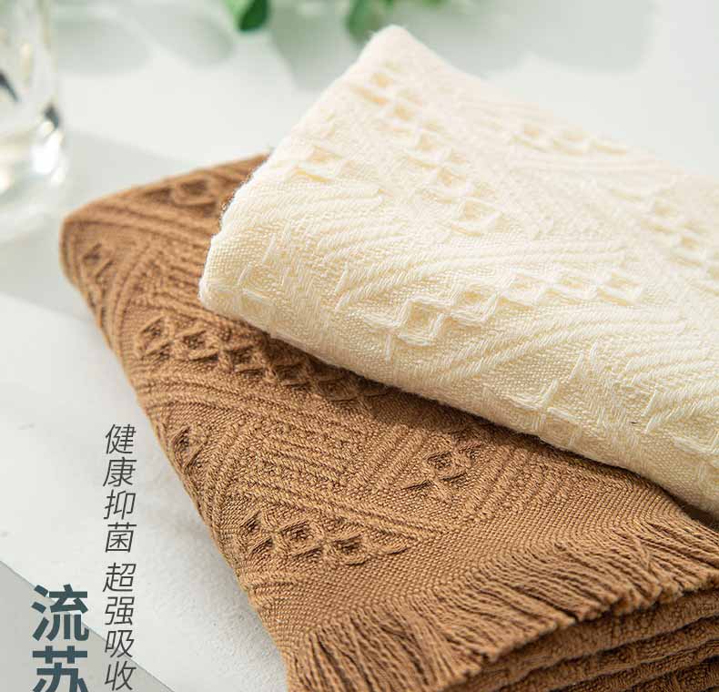 【顺丰配送】恒源祥流苏系列毛巾-浅灰+咖 2条装