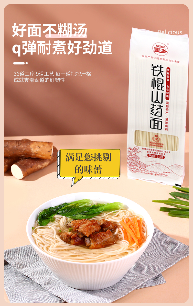 商品名称:麦乡铁棍山药挂面礼盒365g*6袋