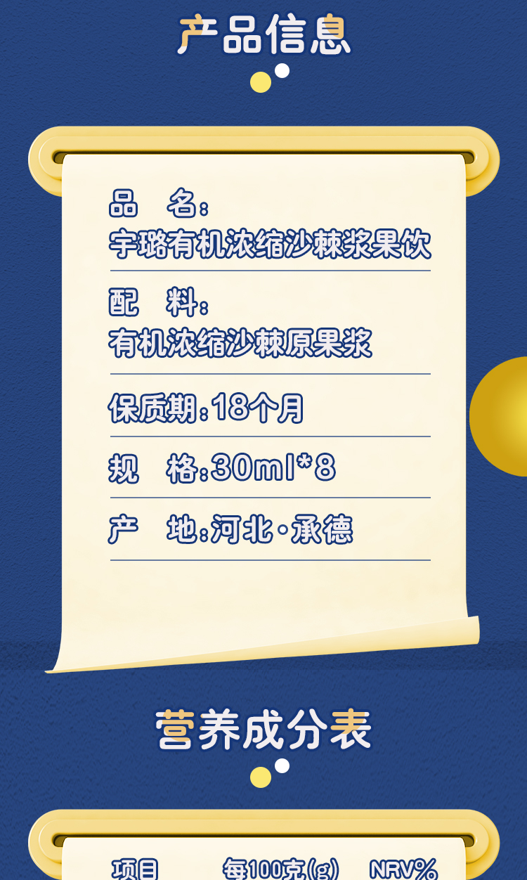 商品名称:宇璐有机浓缩沙棘浆果饮30ml*8瓶