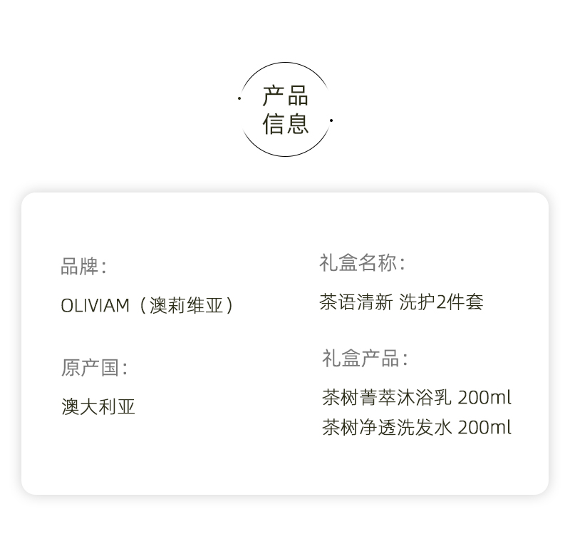 商品名称:Oliviam/澳莉维亚茶语清新洗护2件套(国际版)