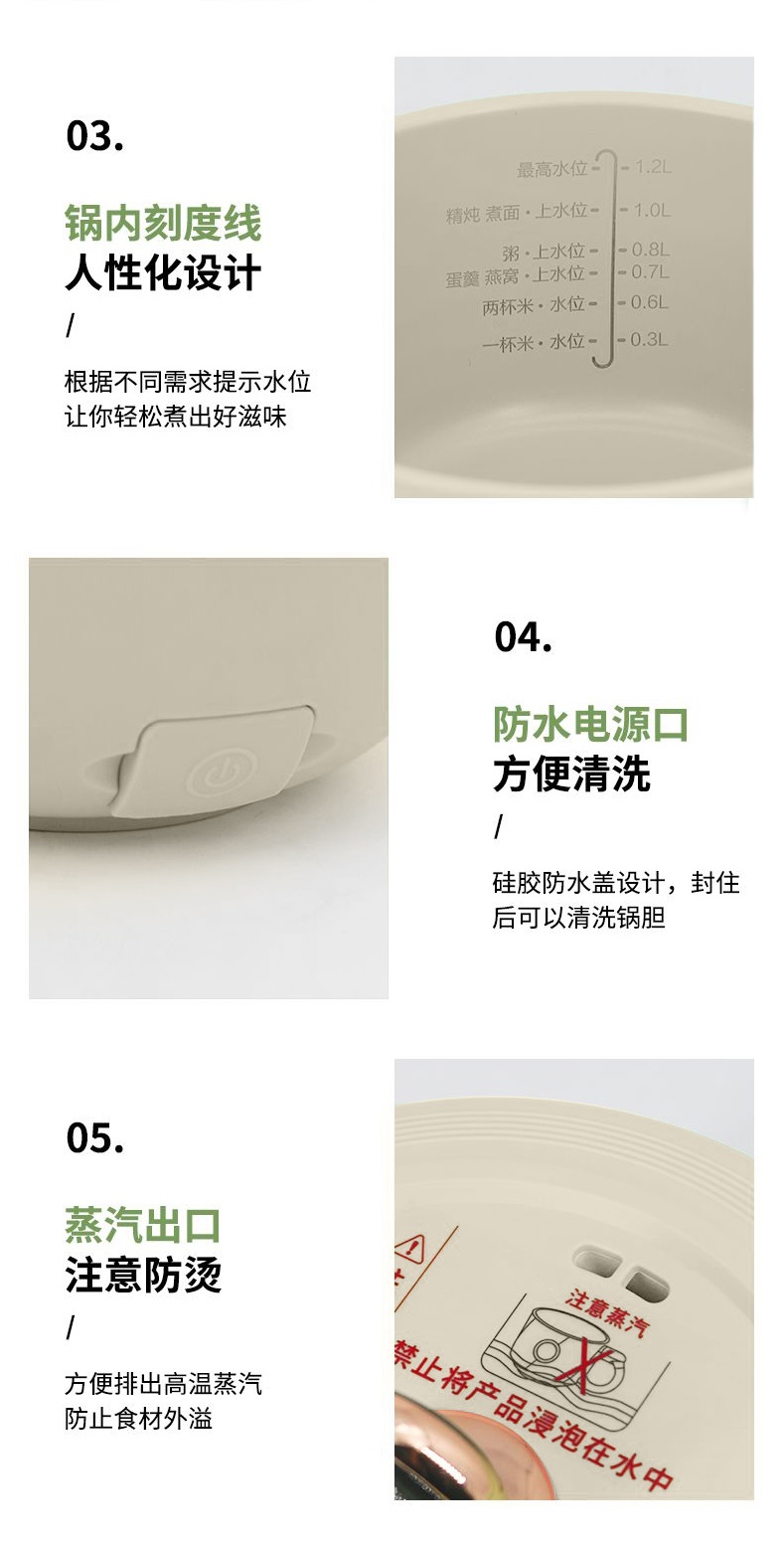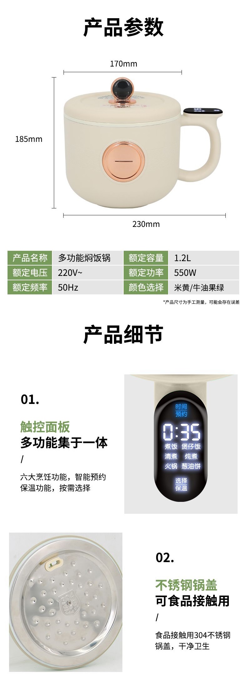 商品名称:picot/蓓菓1.2升多功能焖饭锅-米白色BG-05A