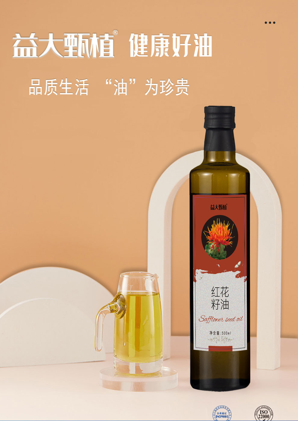 商品名称:益大甄植红花籽油礼盒500ml*2瓶