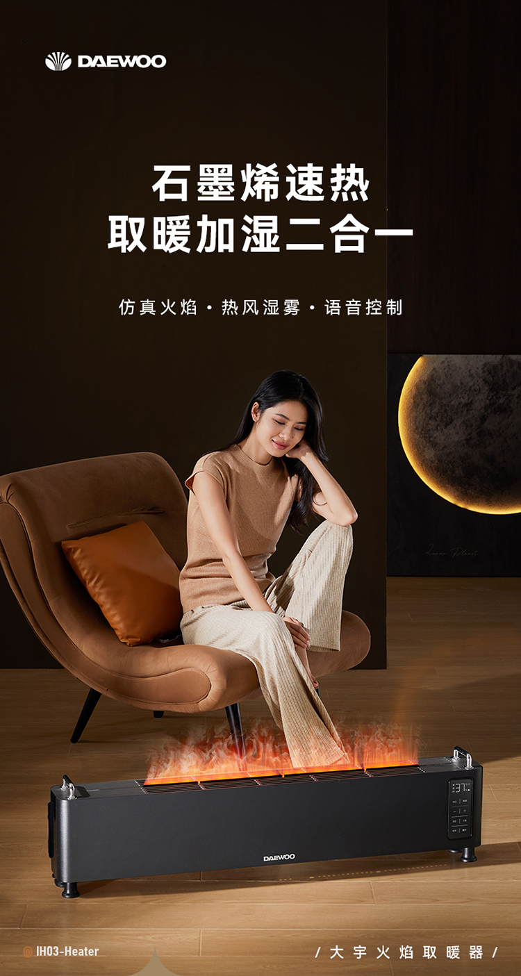 【顺丰配送】DAEWOO/大宇踢脚线火焰取暖器IH03