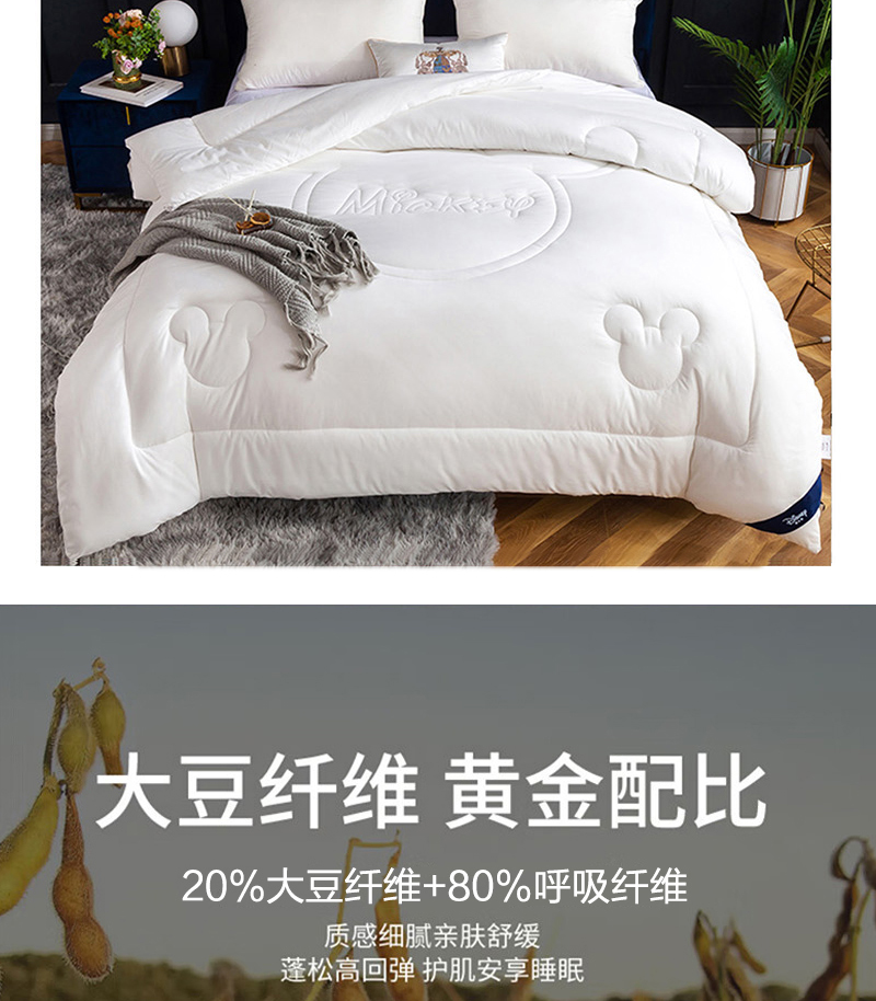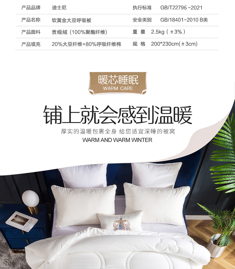 商品名称:DISNEY/迪士尼软黄金大豆呼吸被200x230cm(±3cm) 2500g(±3%)