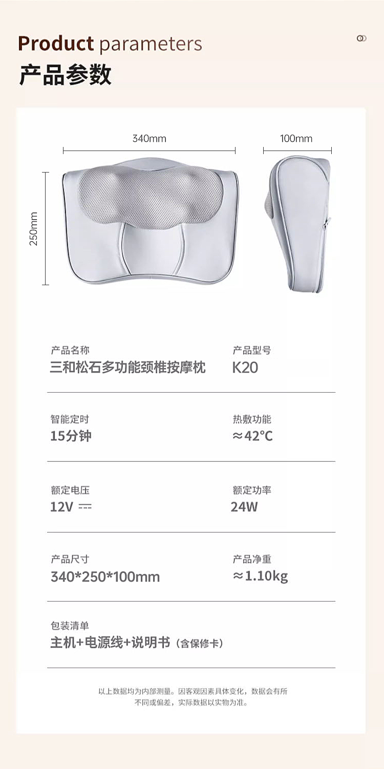 商品名称:SHSS/三和松石多功能颈椎按摩枕K20