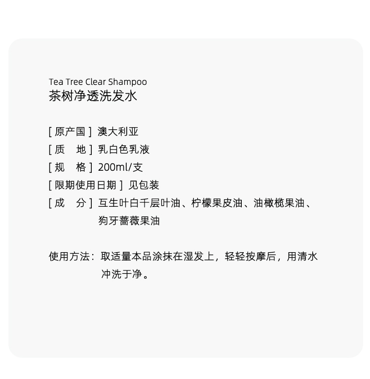 商品名称:Oliviam/澳莉维亚茶树净透洗发水(本土版)
