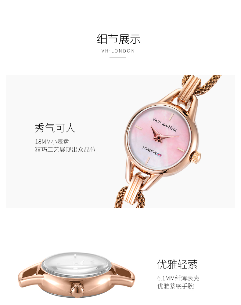 Victoria.Hyde/维多利亚海德 小糖果系列石英腕表 个性防水圆型手表18mm(送手链)