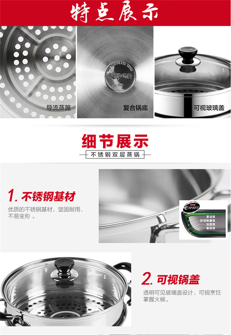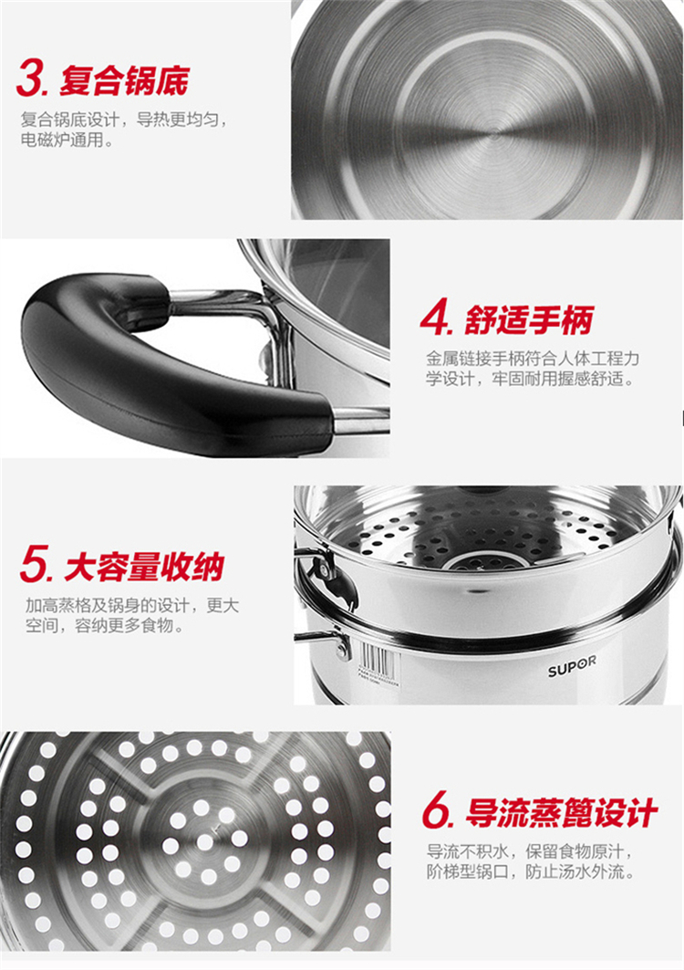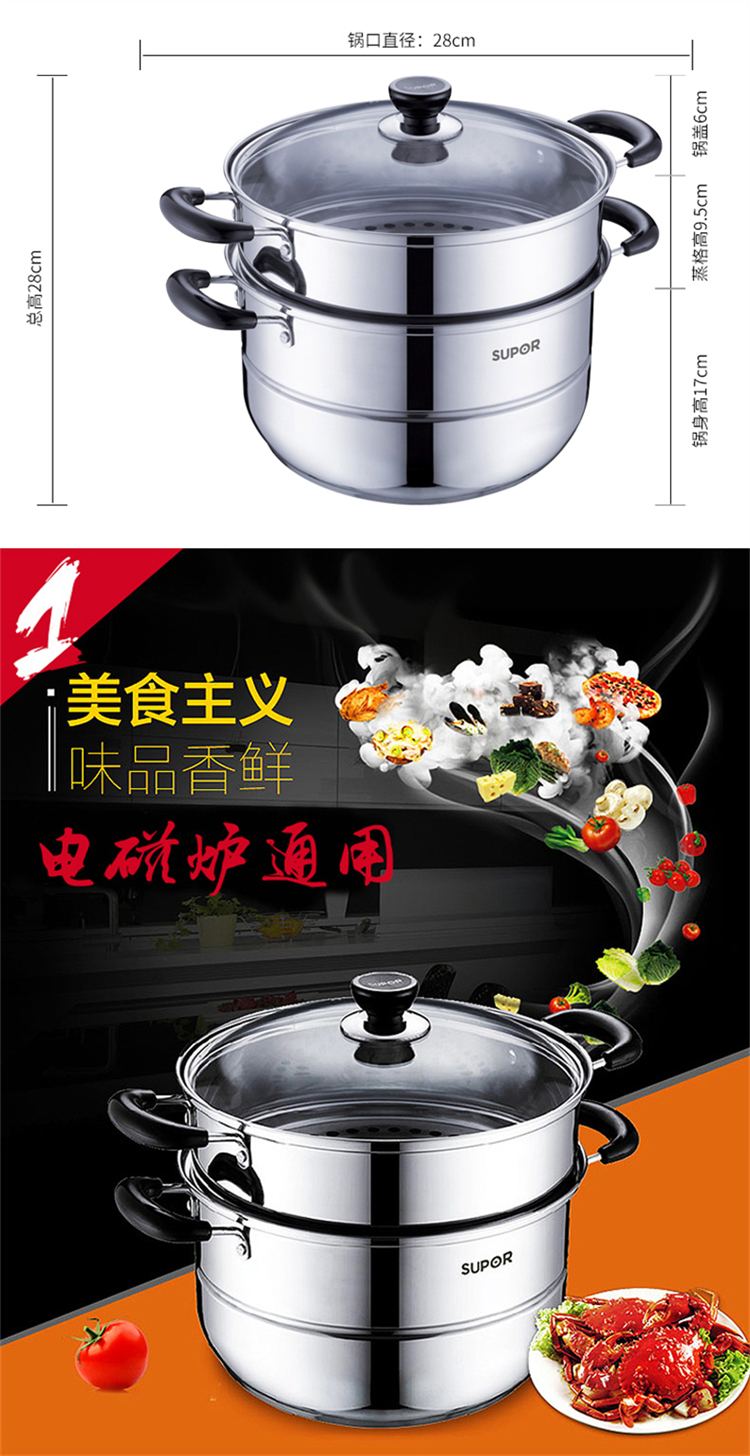 商品名称:【顺丰配送】SUPOR/苏泊尔好帮手不锈钢双层复底蒸锅