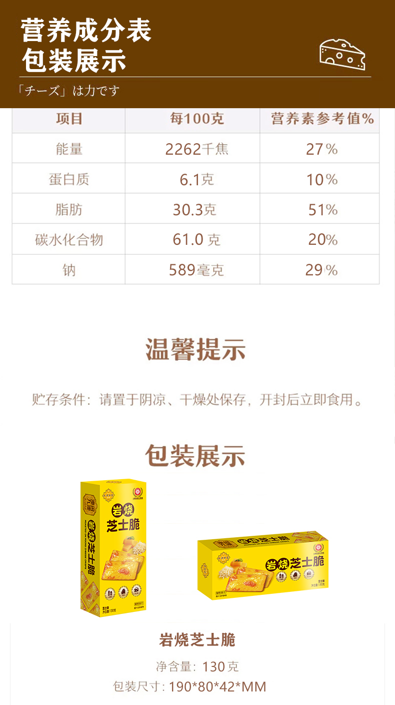 商品名称:九澳饼家岩烧芝士脆饼干130g*4盒