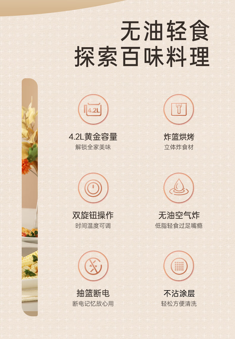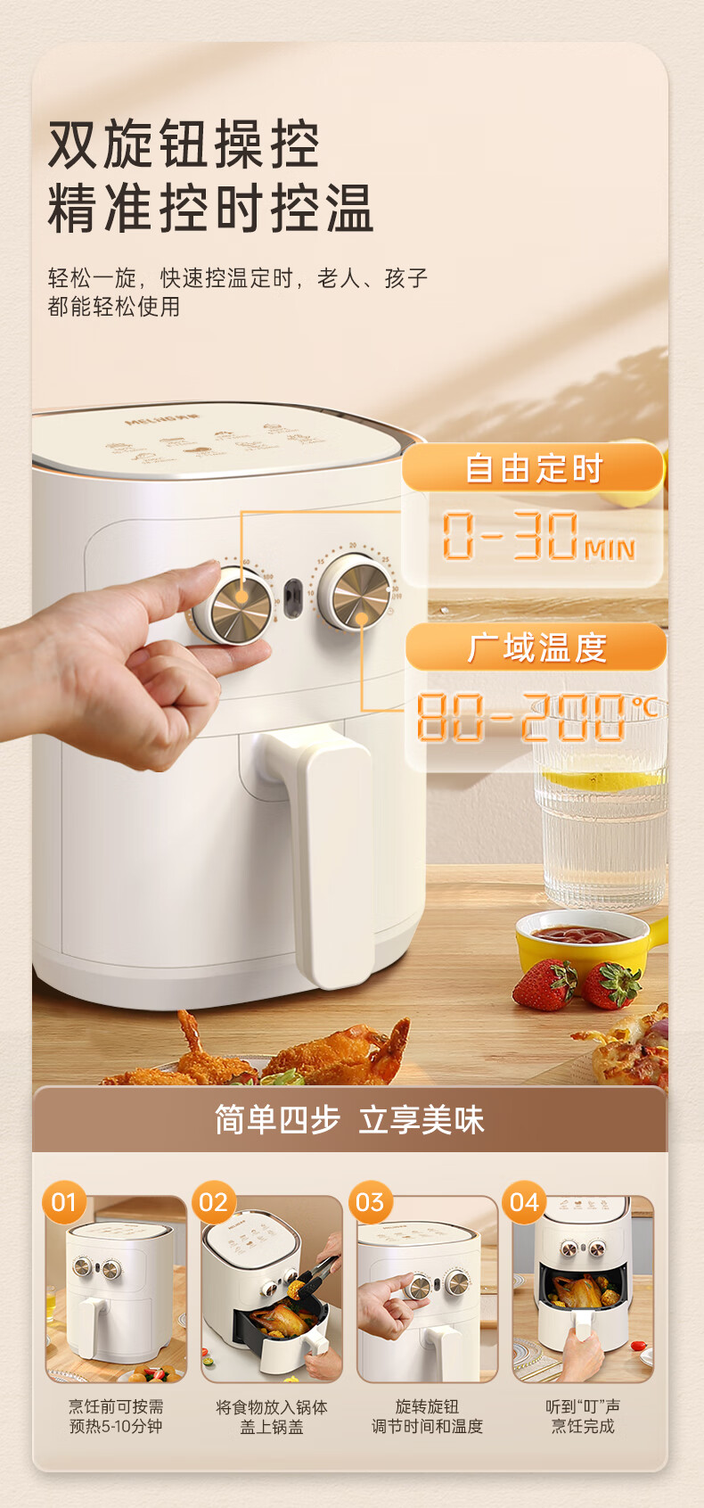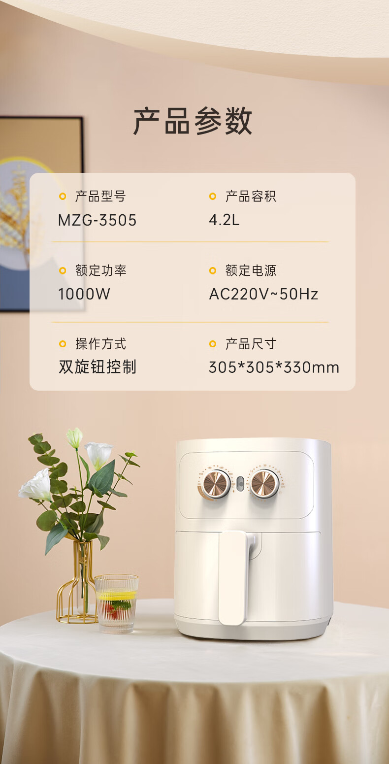 商品名称:MELING/美菱4.2升机械款空气炸锅MZG-3505