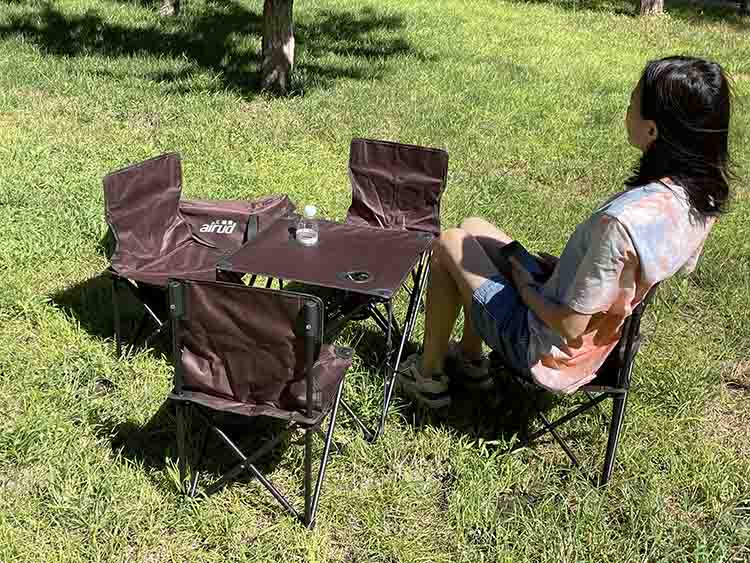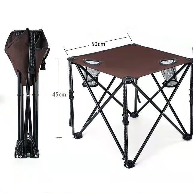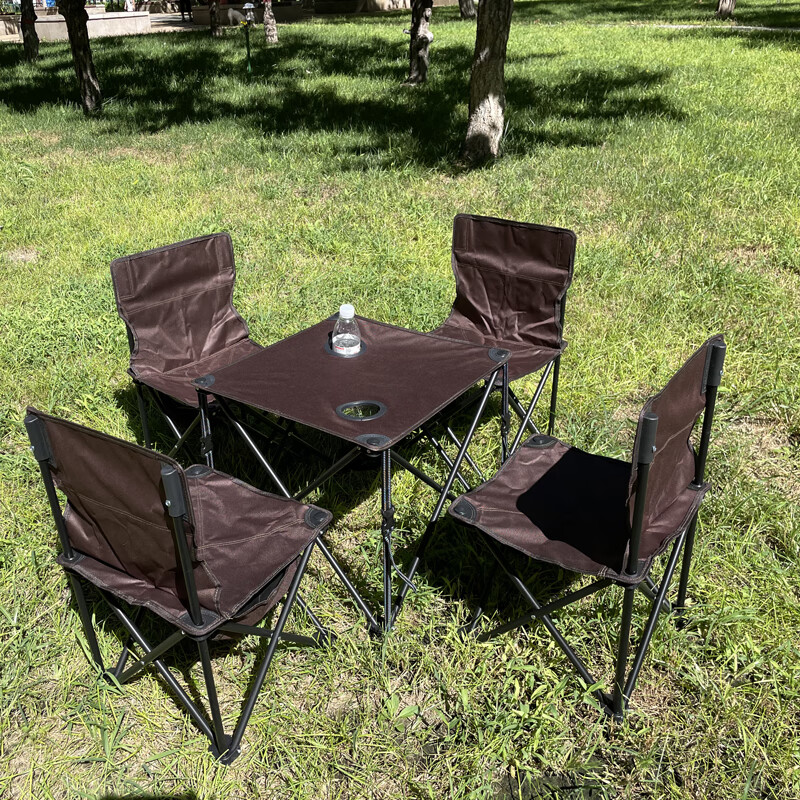 产品特点:1:桌椅采用直径14MM的钢管,面料均采用双层600D牛津布 2:桌子表面有两个放置饮料的槽、可避免饮料的倾洒桌面和桌腿之间有两个固定按扣、可起到防震,加固的作用。 3:折叠桌、椅钢管表面经过防潮处理、可避免生锈、野外使用更安全