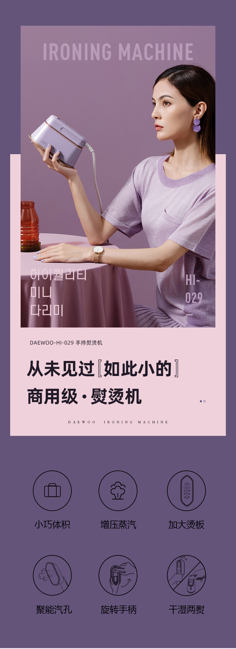 商品名称:DAEWOO/大宇第3代手持挂烫机-紫色HI-029