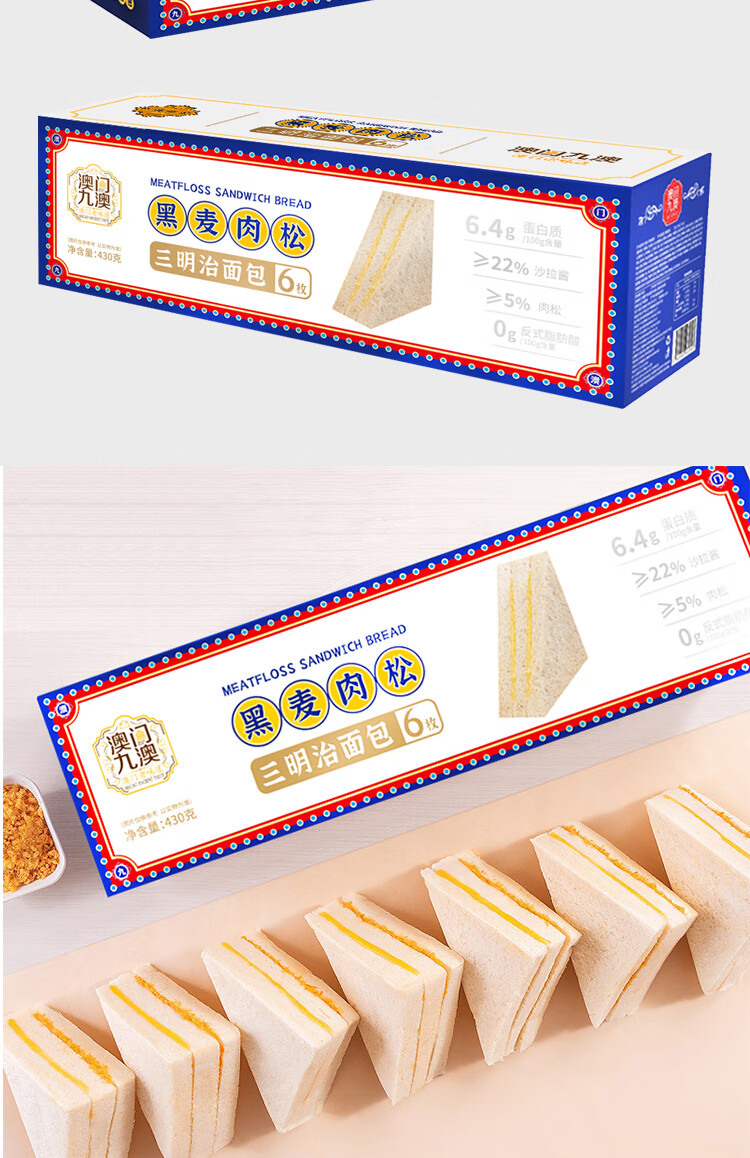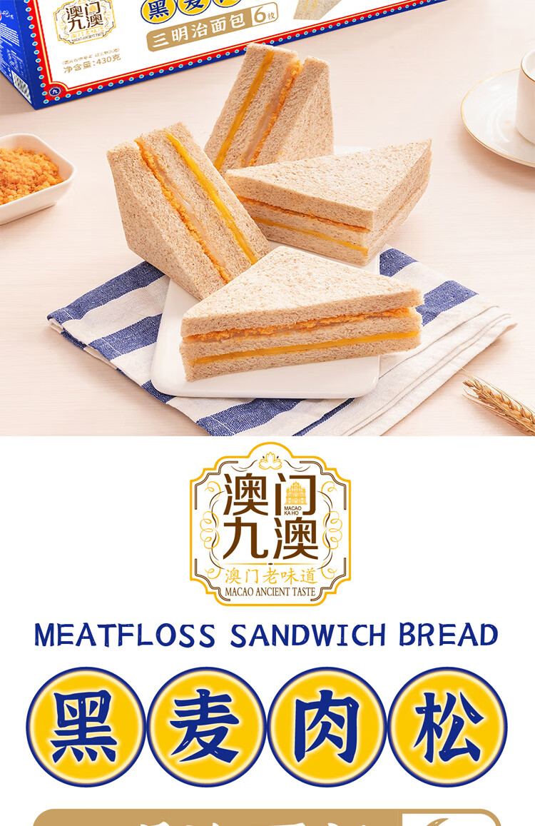 商品名称:九澳饼家黑麦肉松三明治面包430g*2箱