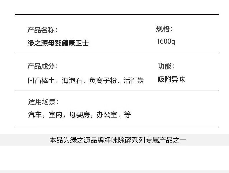 商品名称:绿之源母婴健康卫士净味除醛活性炭