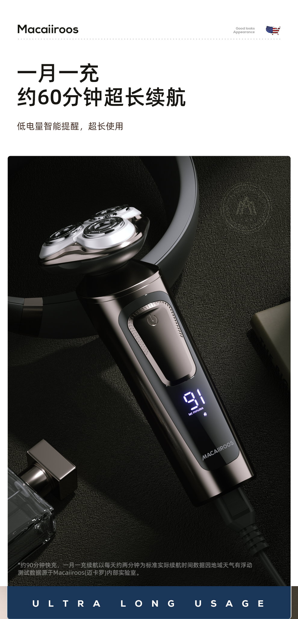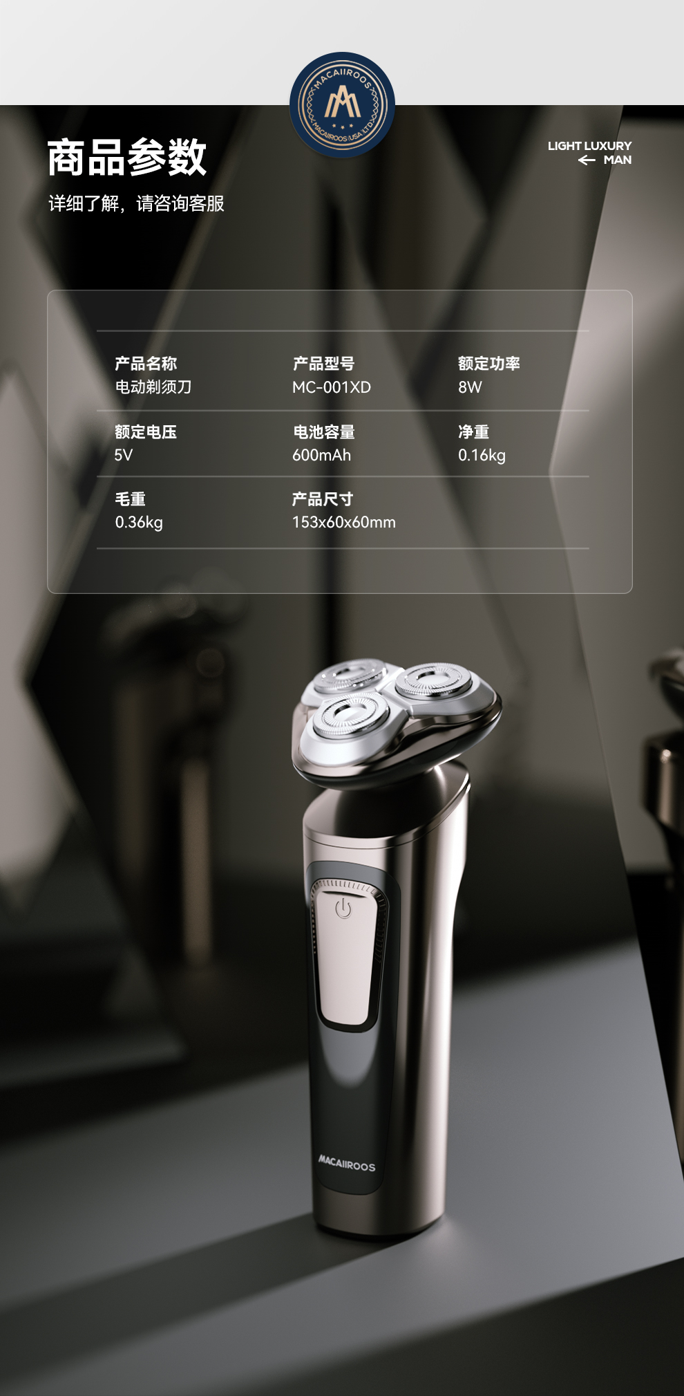 商品名称:MACAIIROOS/迈卡罗电动剃须刀MC-001XD