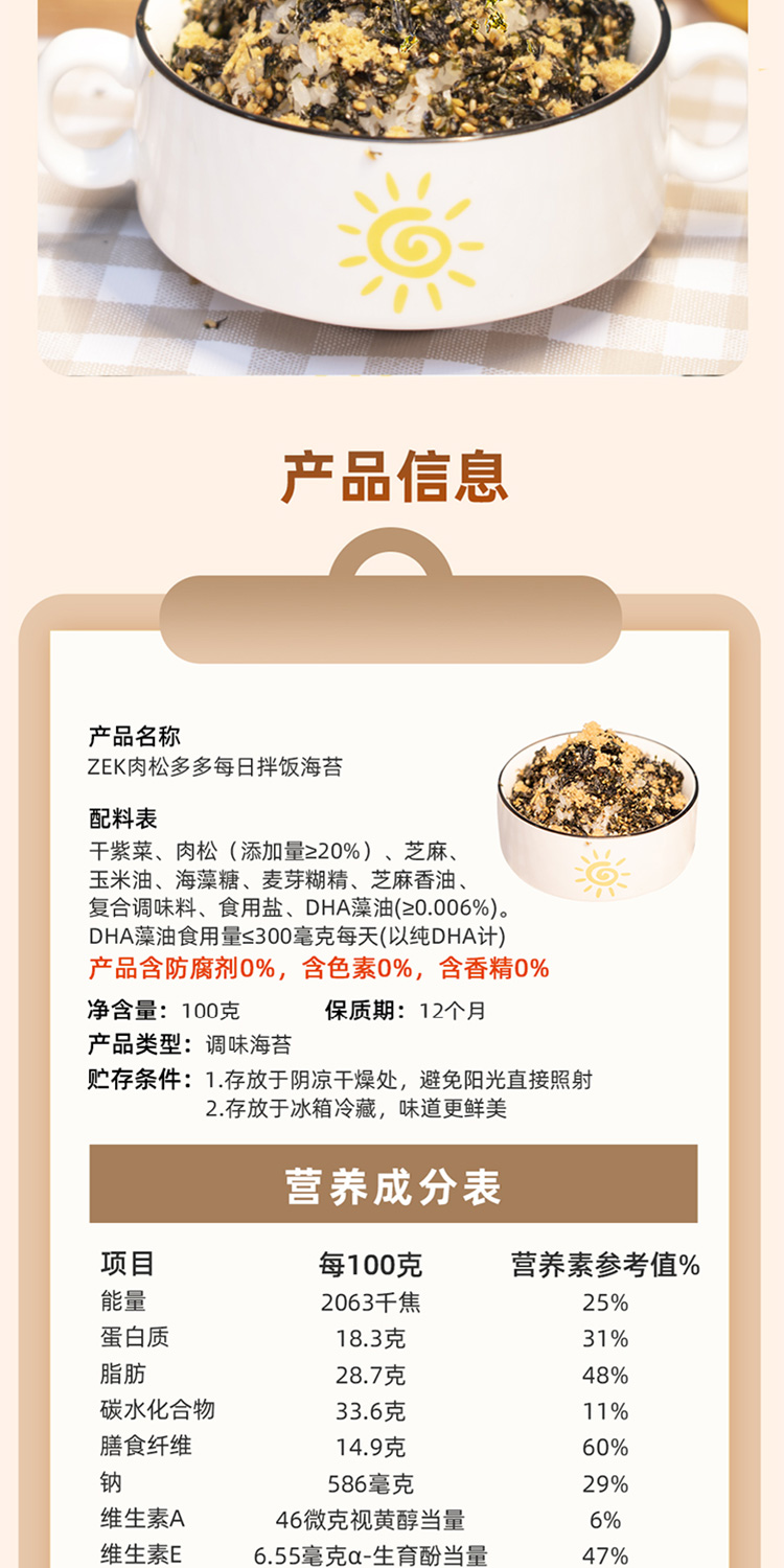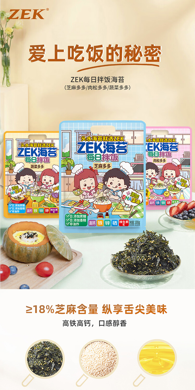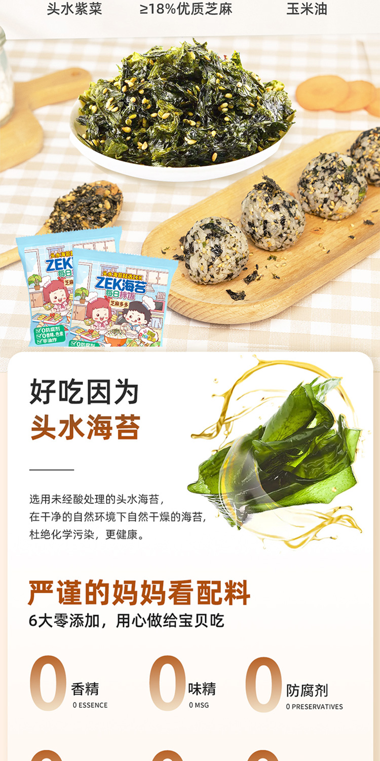 商品名称:ZEK每日拌饭海苔原味肉松味蔬菜味混合装100g*6袋
