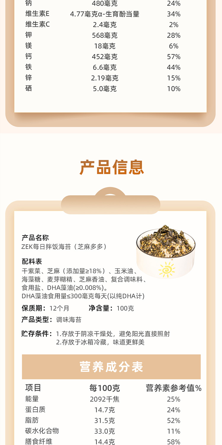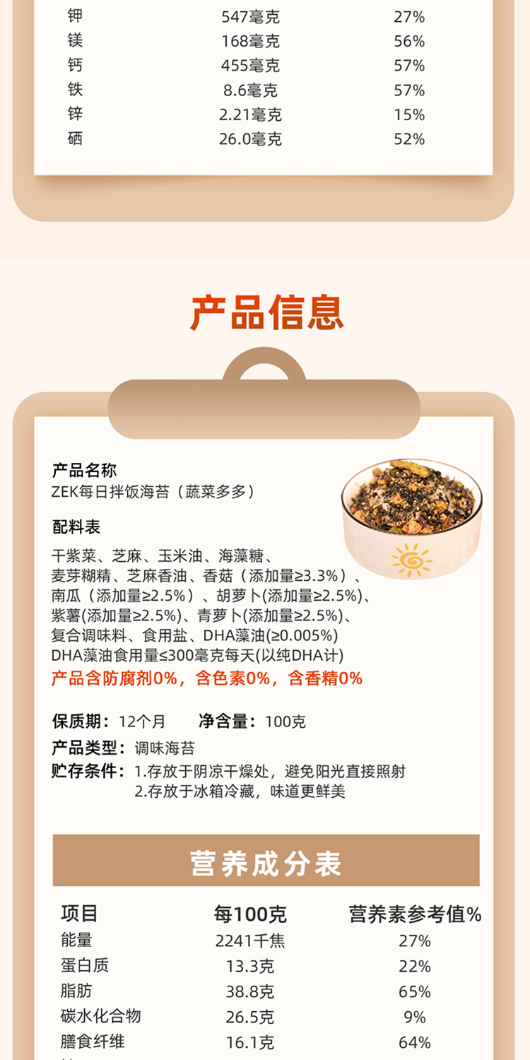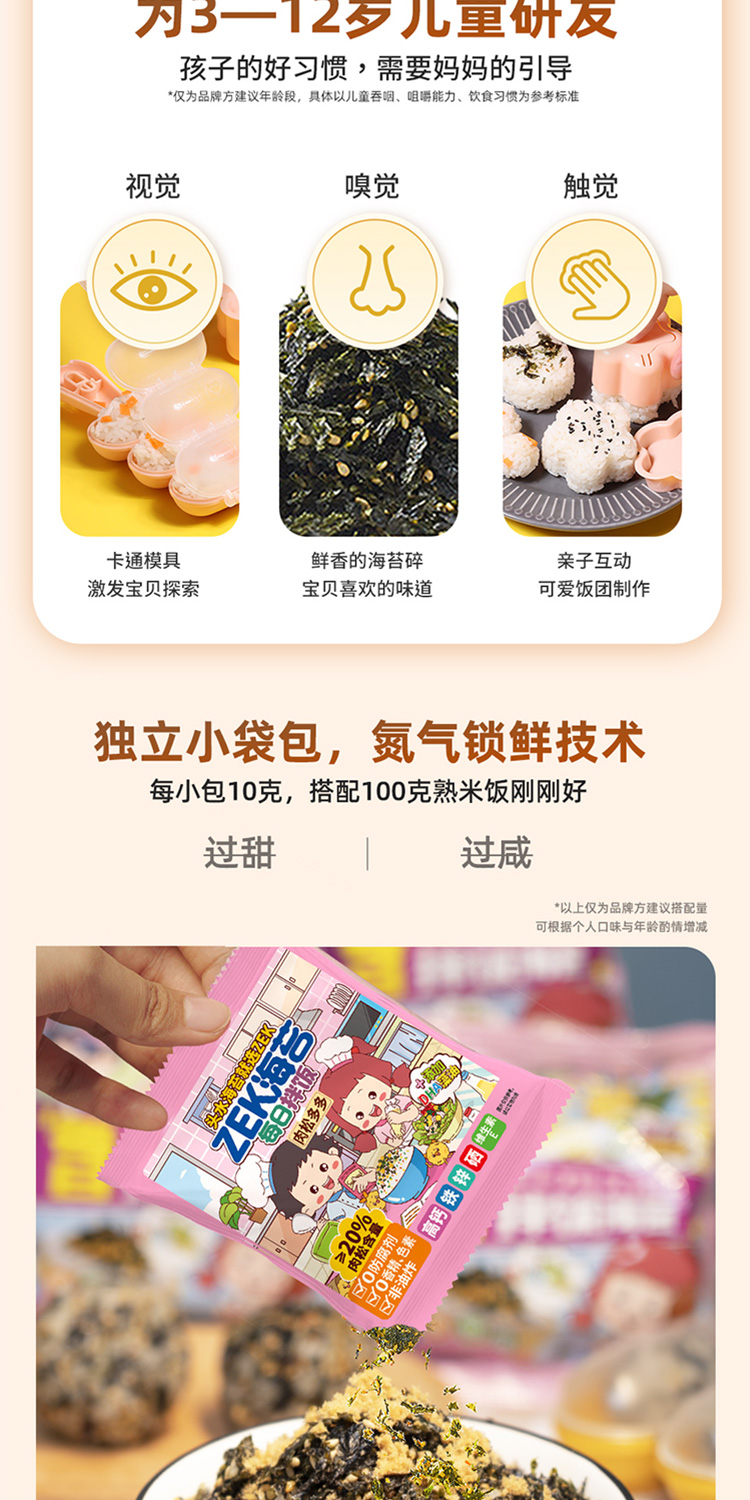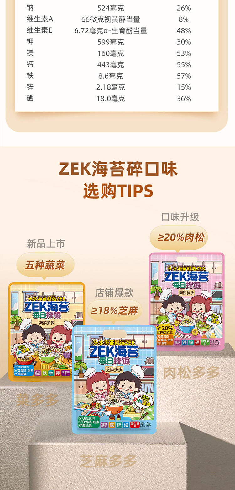 商品名称:ZEK每日拌饭海苔原味肉松味蔬菜味混合装100g*6袋