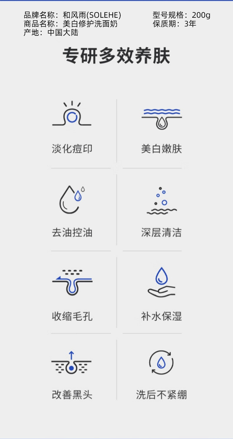 商品名称:SOLEHE/和风雨美白修护洗面奶200g