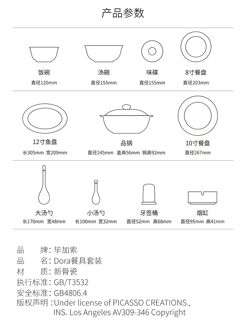 商品名称:PICASSO/毕加索Dora中餐具16头B P20-NT16B