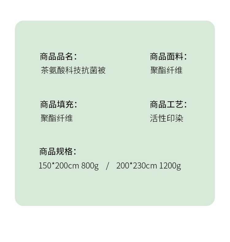商品名称:pochme textile/多奇曼家纺茶氨酸科技抗菌被
