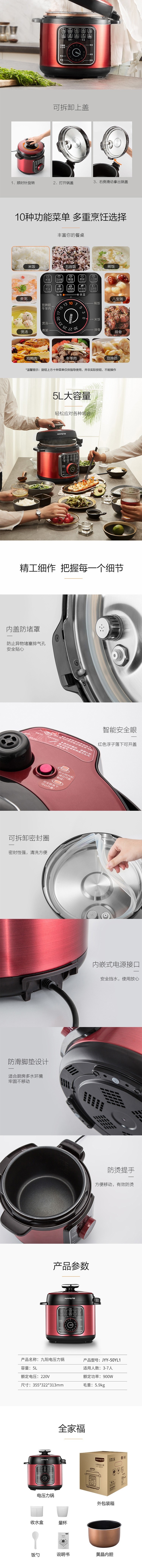 商品名称:Joyoung/九阳5升电压力锅-红色JYY-50YL1