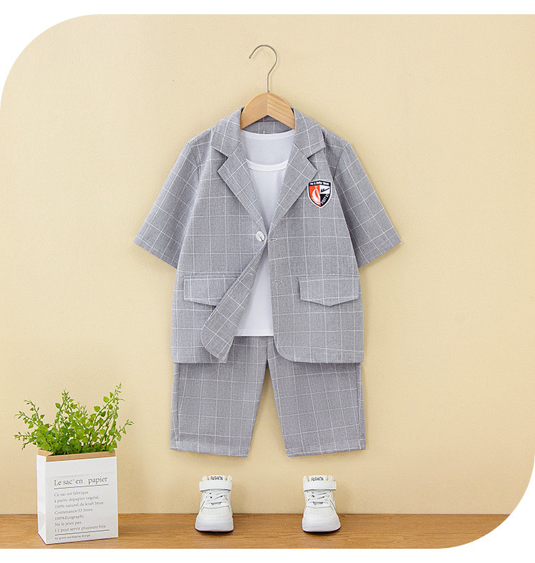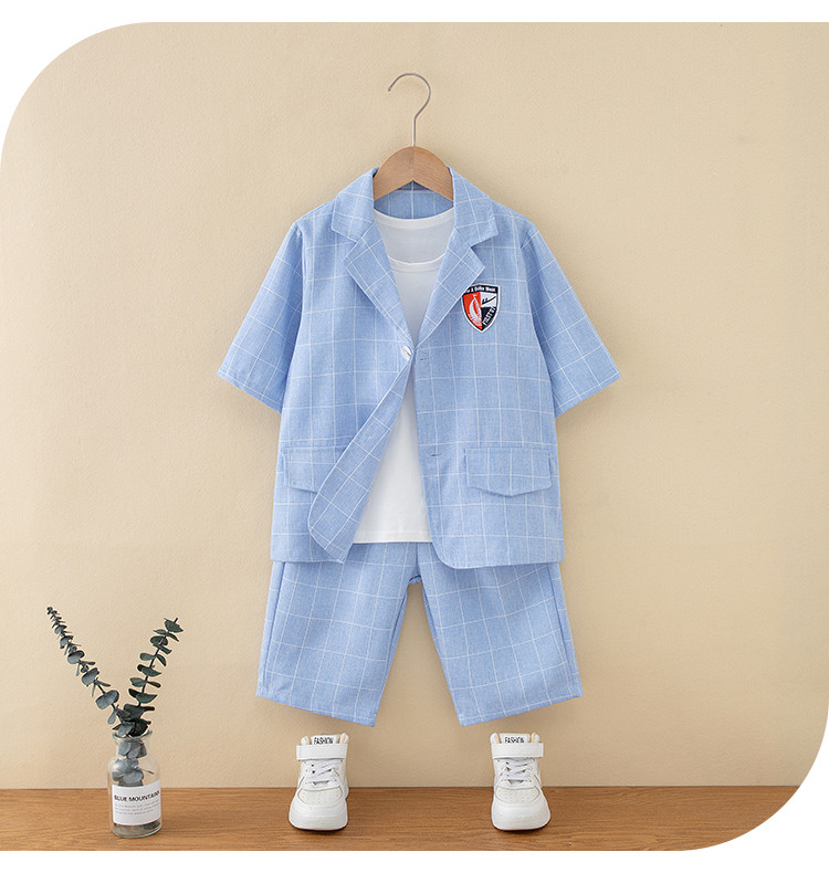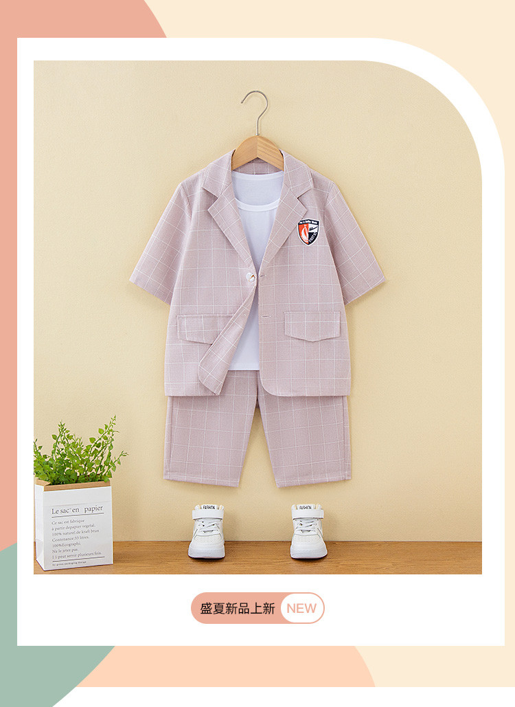 商品名称:【童装】春夏男童中大童外套背心短裤三件套儿童套装 190547