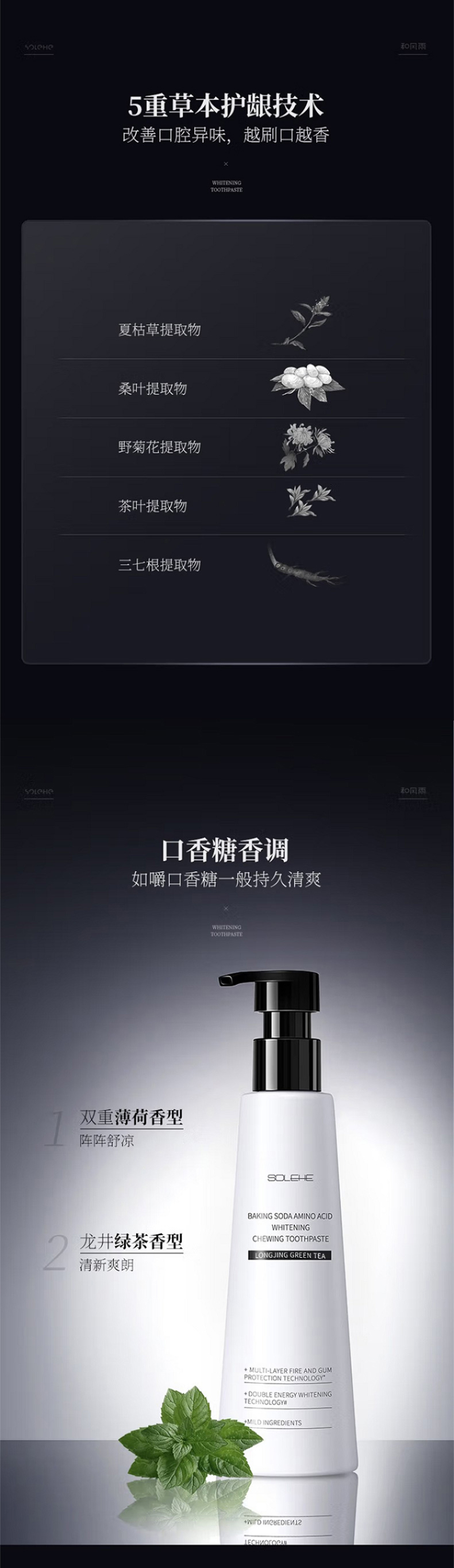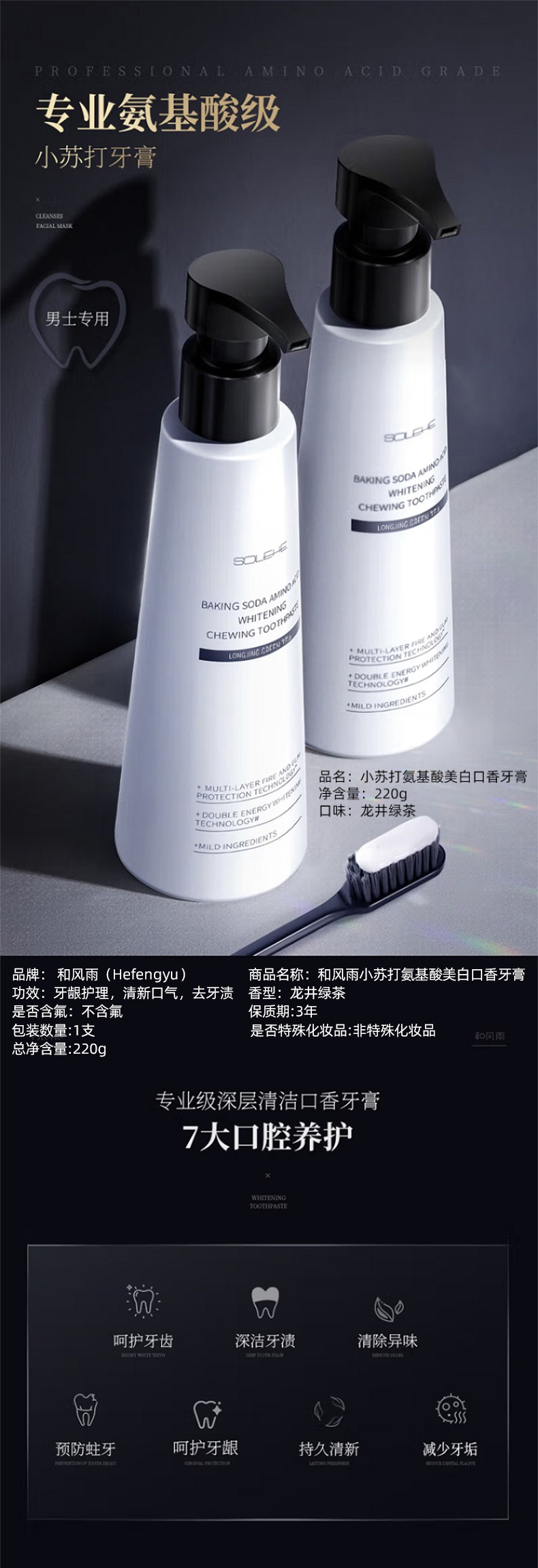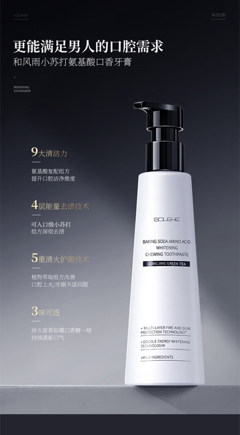 商品名称:SOLEHE/和风雨小苏打氨基酸美白口香牙膏-绿茶龙井220g
