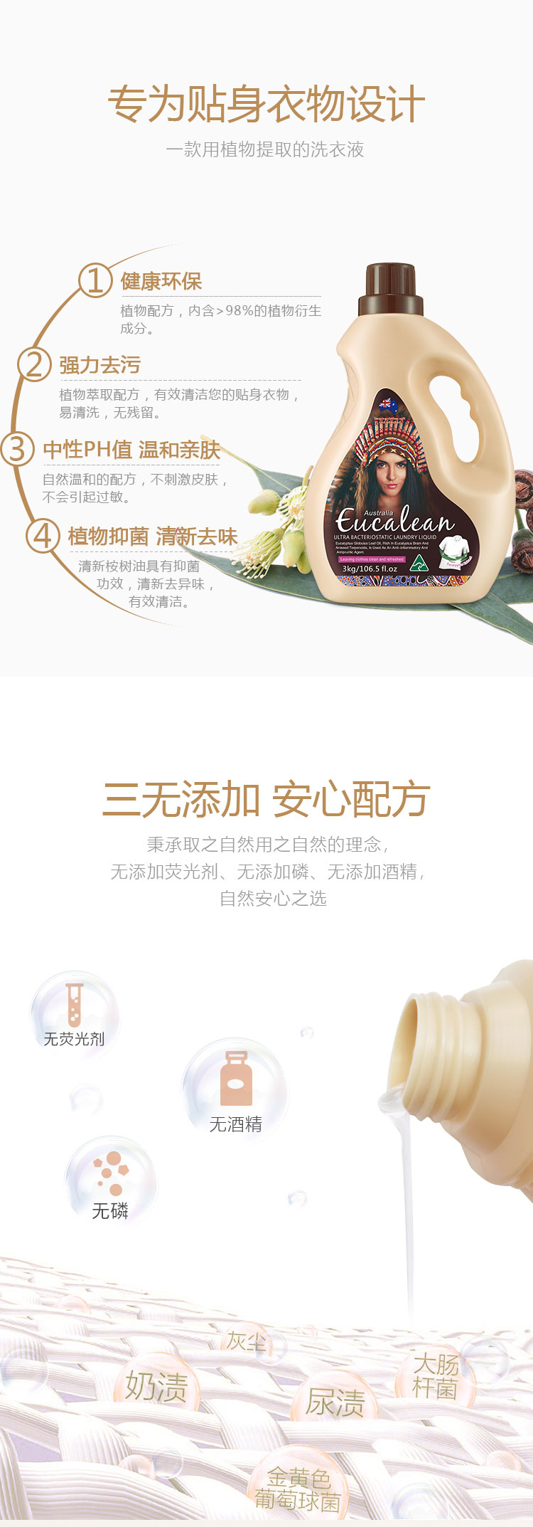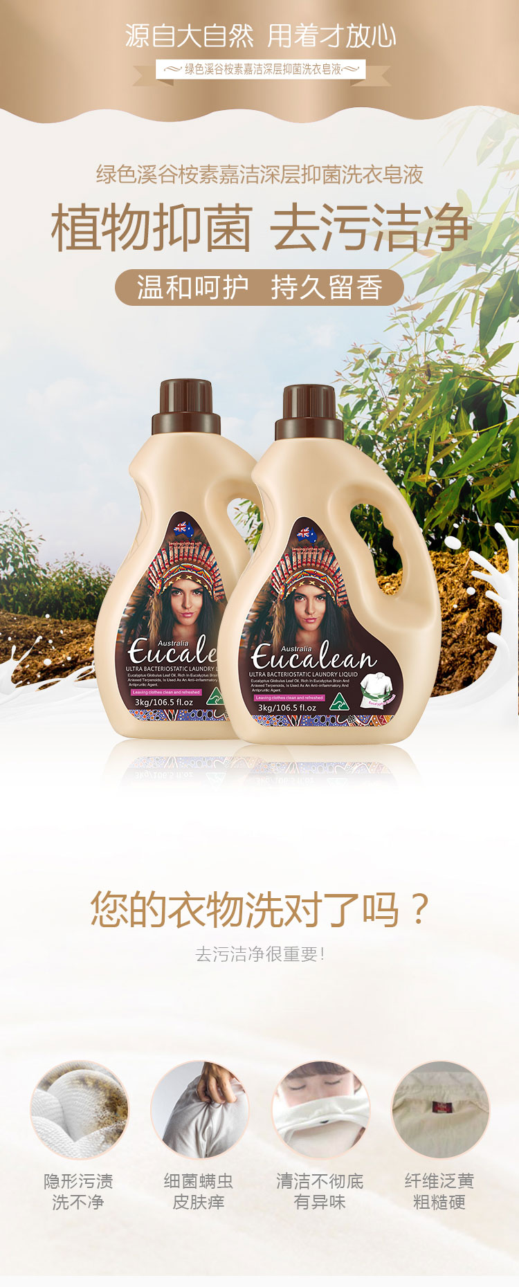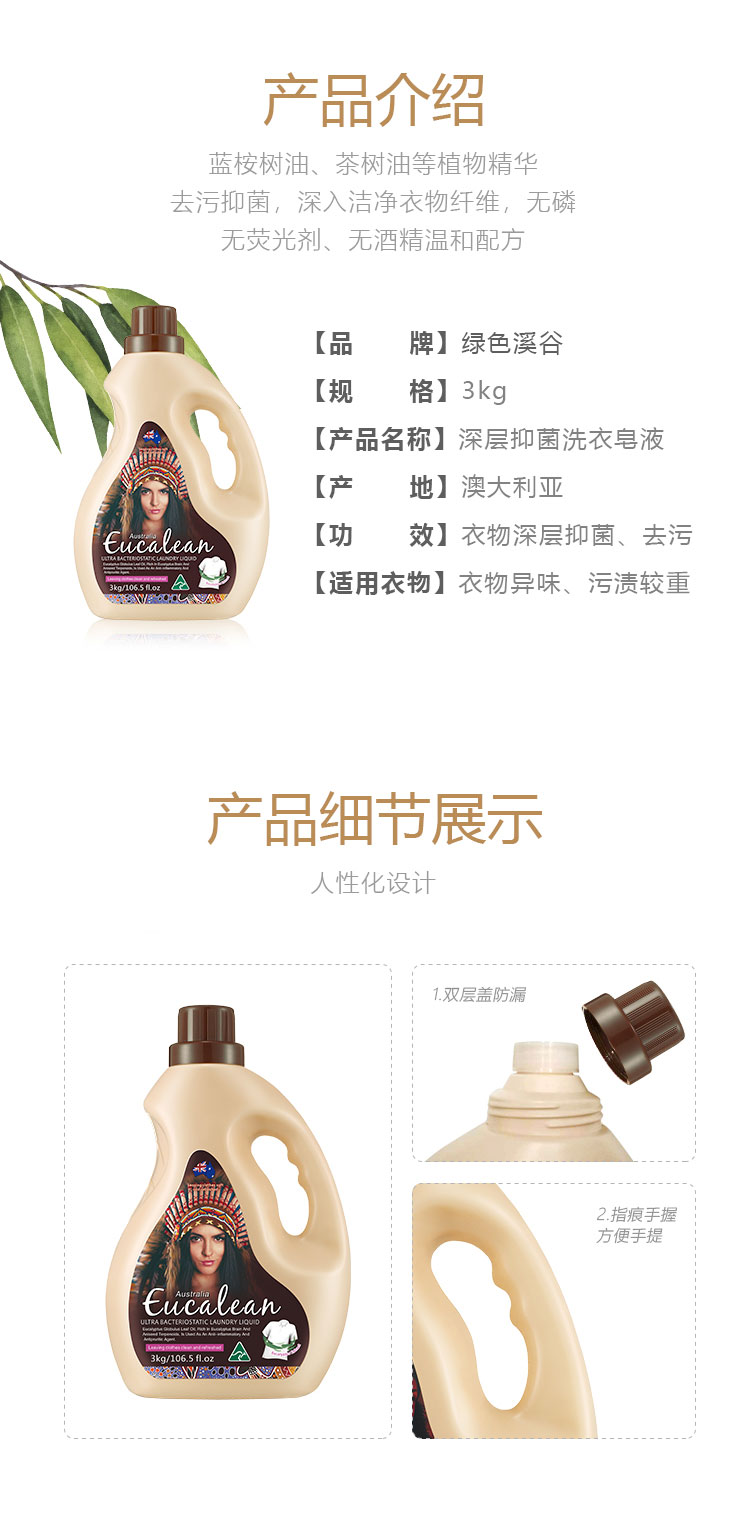 商品名称:GreenKosy/绿色溪谷桉素嘉洁深层抑菌洗衣皂液3kg