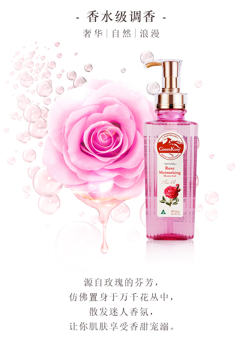 商品名称:GreenKosy/绿色溪谷玫瑰保湿沐浴露700g