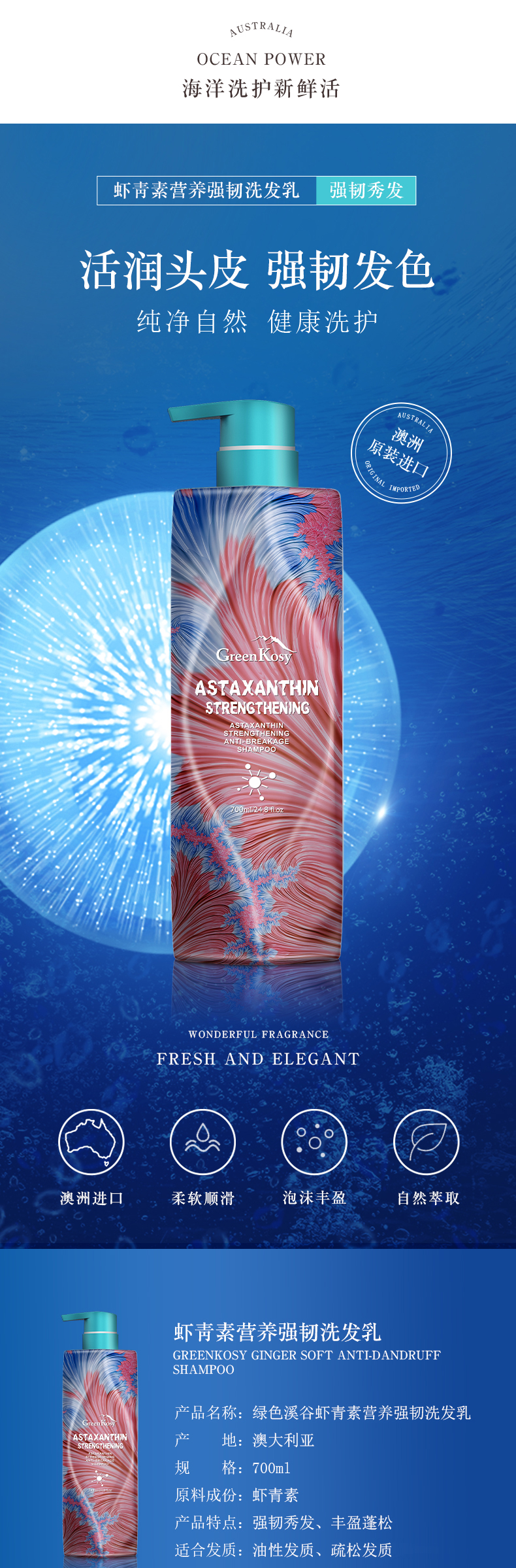 商品名称:GreenKosy/绿色溪谷虾青素营养强韧洗发乳700ml