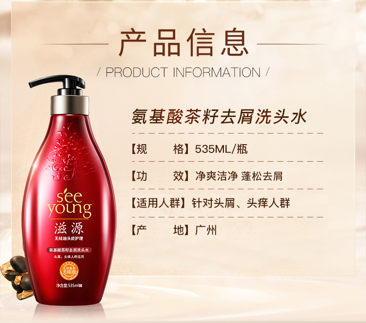 商品名称:seeyoung/滋源氨基酸茶籽去屑洗头水535ml
