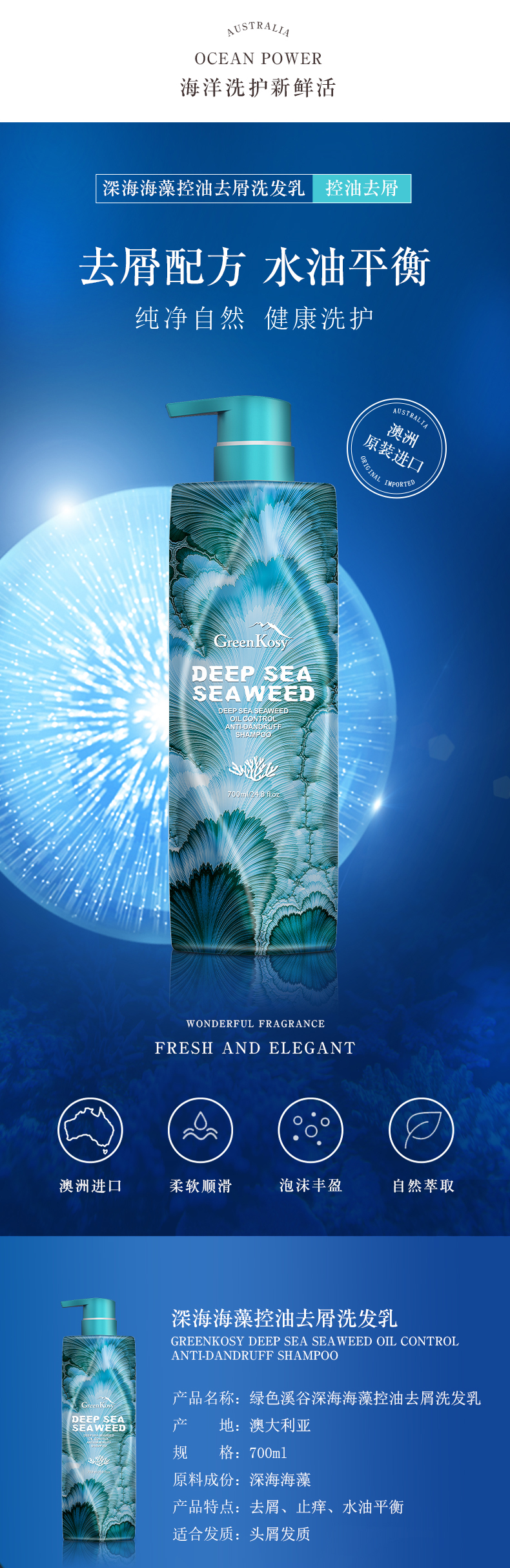 商品名称:GreenKosy/绿色溪谷深海海藻控油去屑洗发乳700ml