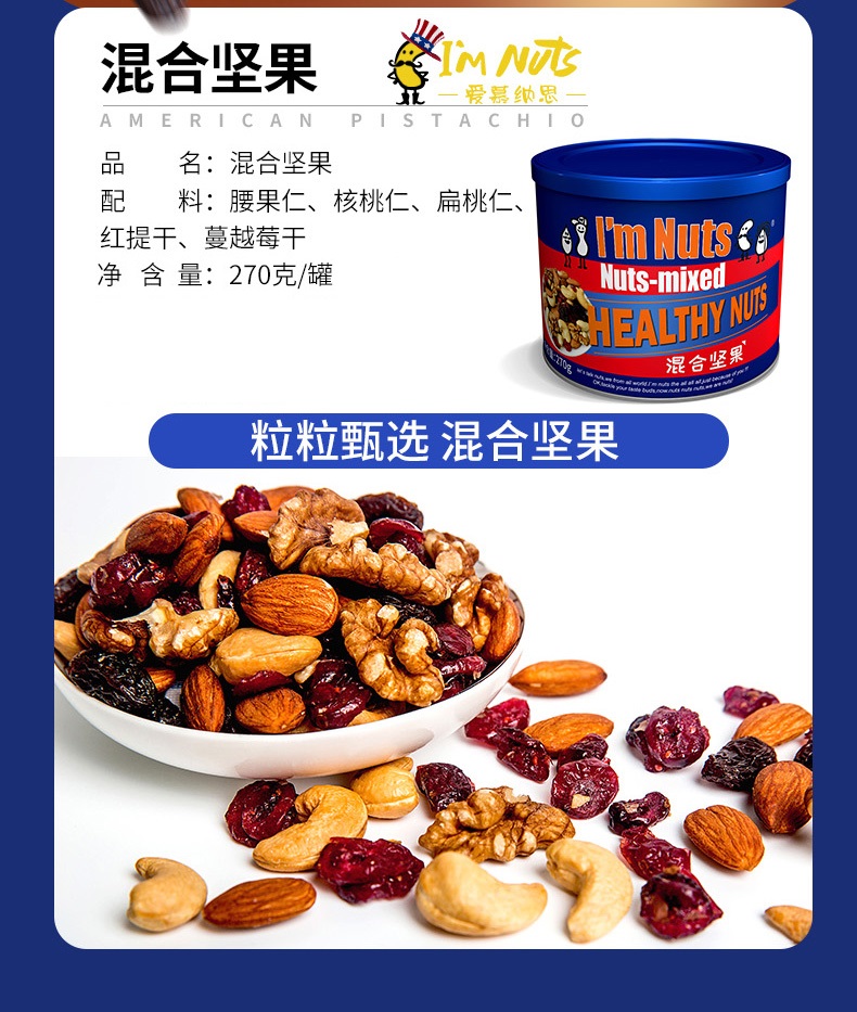 商品名称:爱慕纳思混合坚果铁罐装270g*2罐
