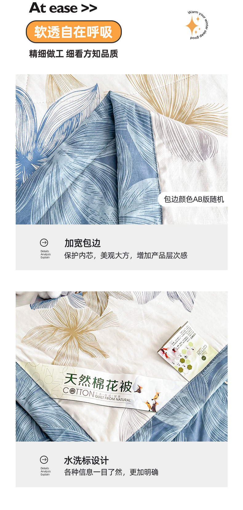 本页面仅为棉花夏凉被单品描述,其他均为产品拍摄需要,不属于本链接销售对象。