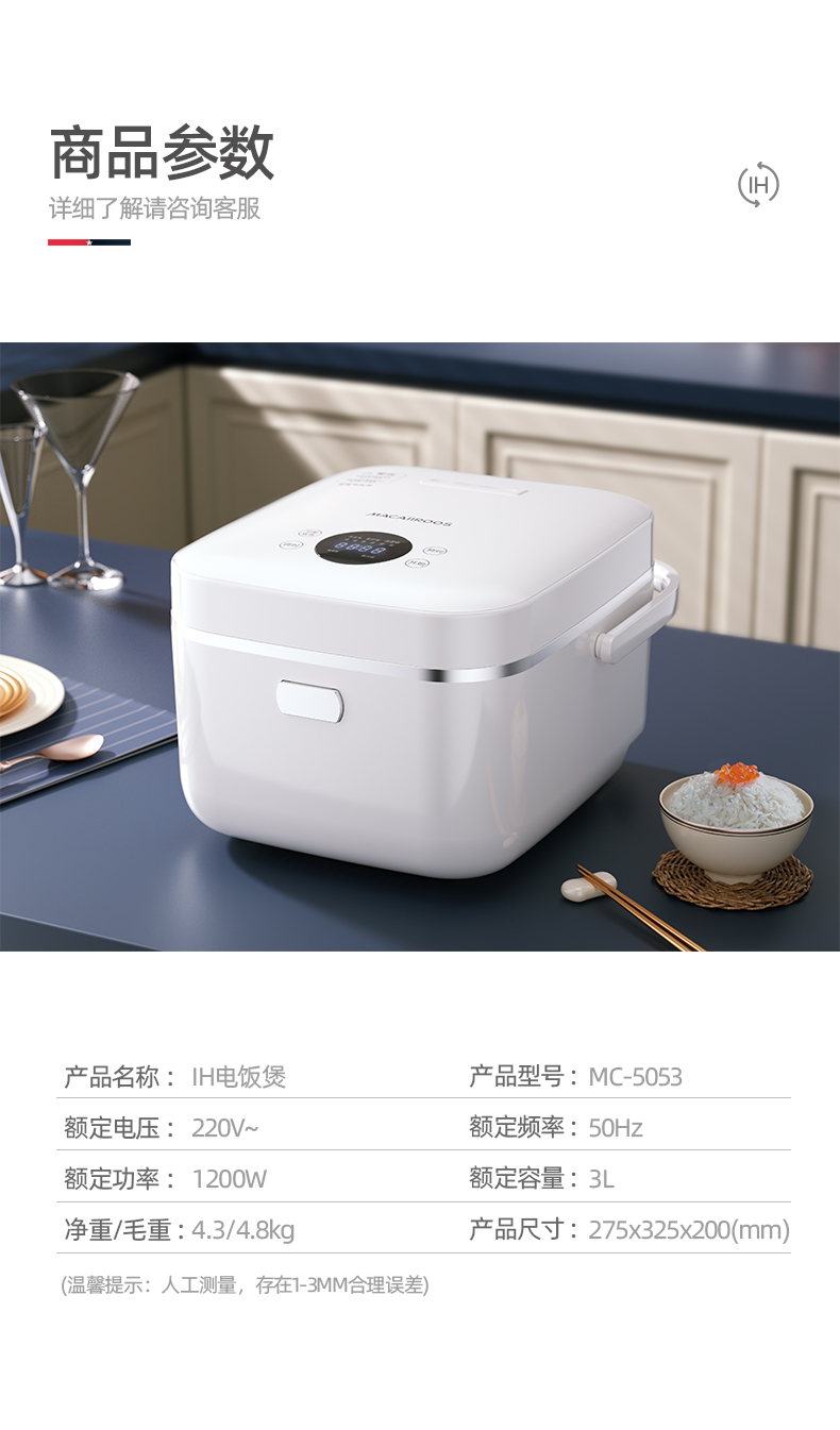 商品名称:MACAIIROOS/迈卡罗3升IH电饭煲MC-5053升级版