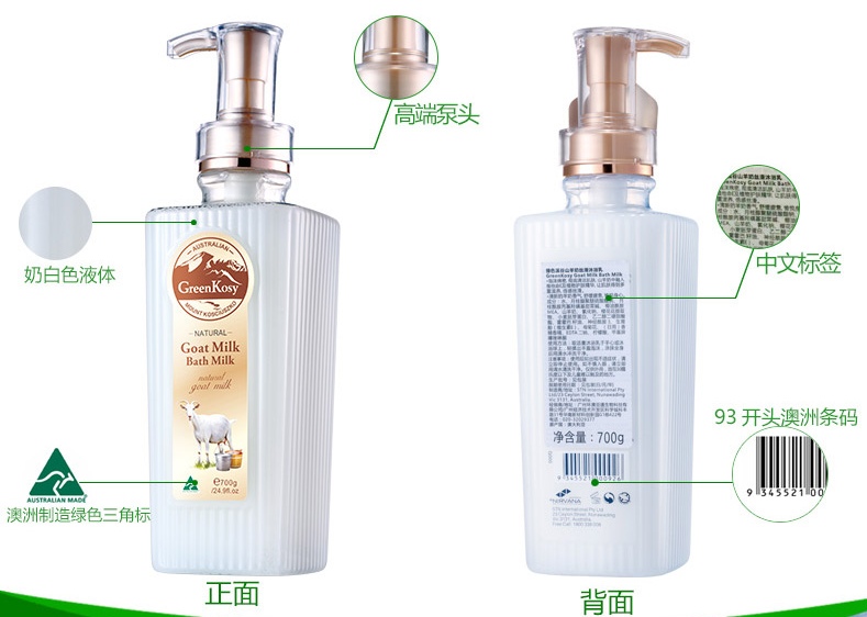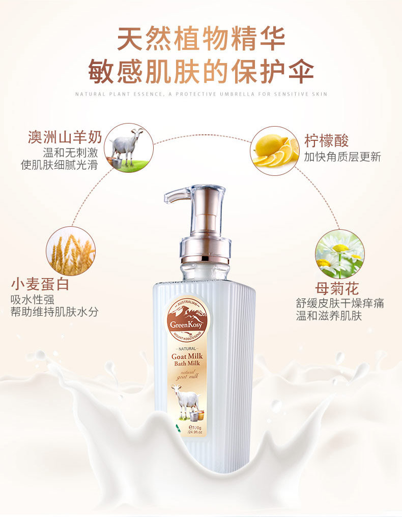 商品名称:GreenKosy/绿色溪谷山羊奶沐浴露700g