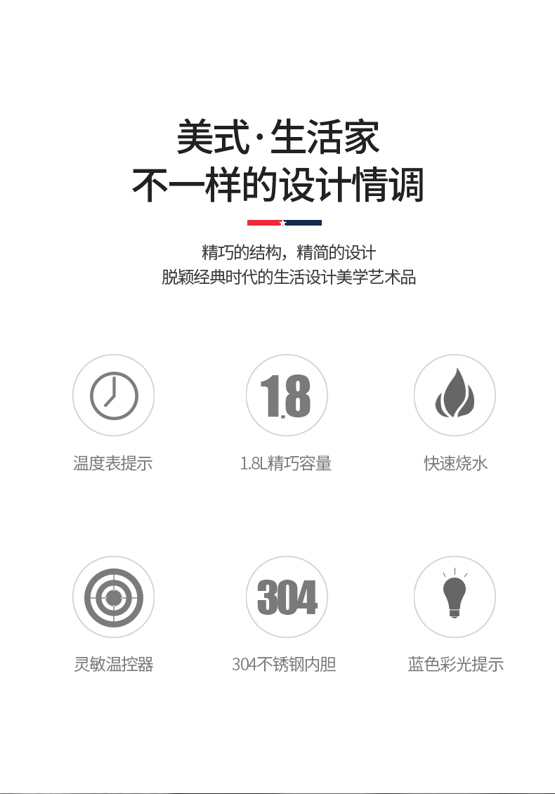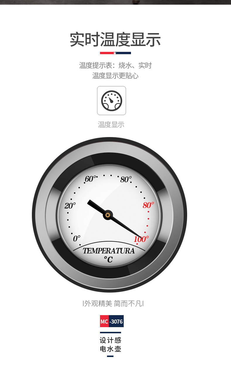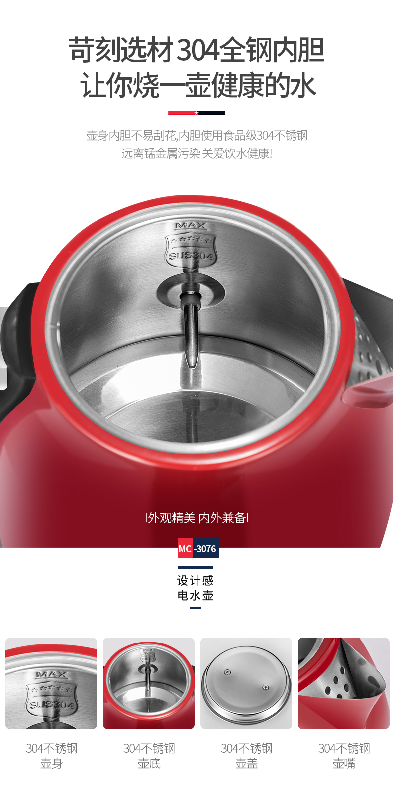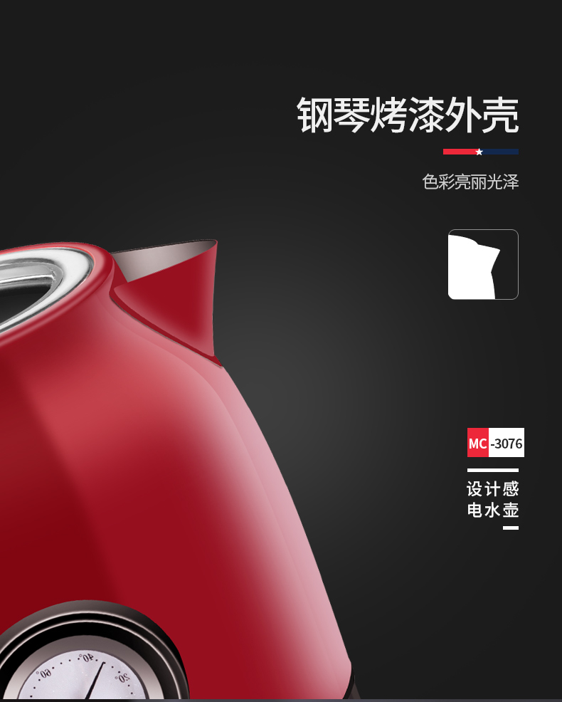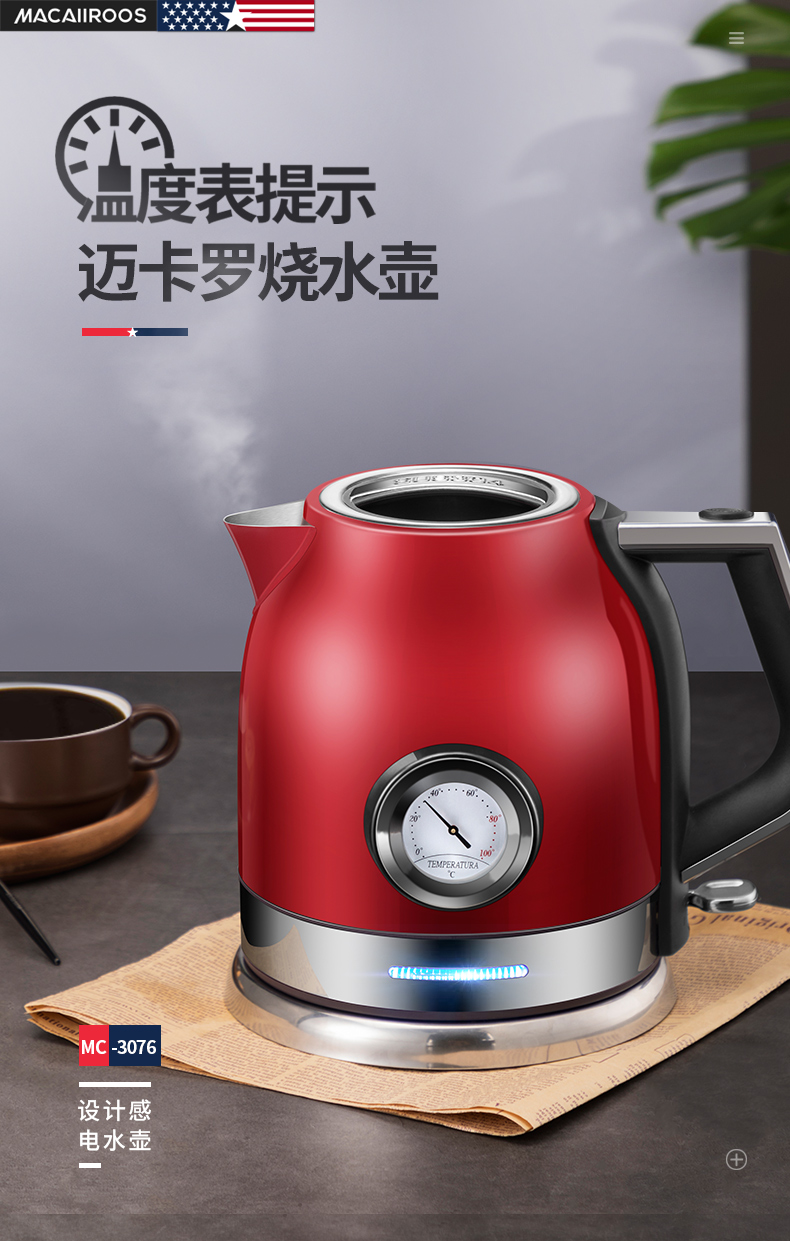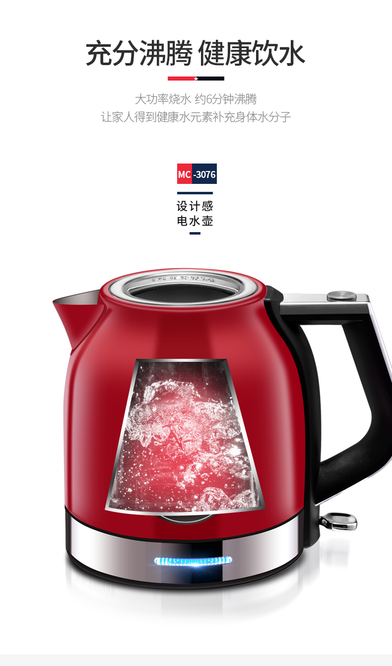 商品名称:MACAIIROOS/迈卡罗1.8升电热水壶MC-3076