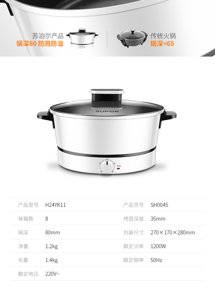 商品名称:SUPOR/苏泊尔3升多功能电火锅H24YK11
